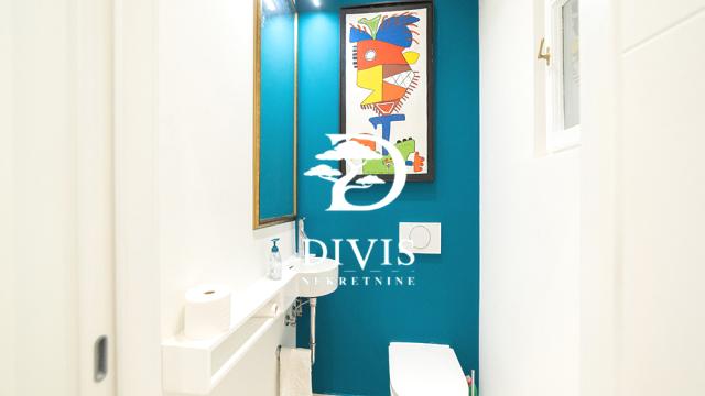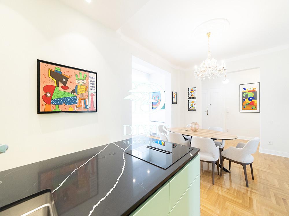 Na jednoj od najlepših lokacija na Vračaru, u mirnoj i prestižnoj Mlatišuninoj ulici, nalazi se ovaj potpuno renoviran salonski stan površine 95 m². Smešten je u predratnoj zgradi sa liftom, na visokom prvom spratu, dvostrano orijentisan, sa svetlom visinom plafona od 3 metra. Stan je temeljno renoviran pre dve godine – u potpunosti su zamenjene sve instalacije (struja, voda, kanalizacija), uvedeno grejanje i hlađenje putem toplotnih pumpi, urađena nova spoljašnja stolarija, keramika i sanitarije u kupatilima i toaletu. Unutrašnja stolarija je restaurirana i ofarbana, čime je očuvan duh starog Beograda. Strukturalno, stan se sastoji od komfornog ulaznog dela i predsoblja sa tehničkim plakarom i izlazom na malu terasu. Centralni deo stana koncipiran je kao savremeni open space – prostrana kuhinja sa ugradnim aparatima vrhunskog kvaliteta, trpezarija i dnevni boravak, uz gostinski toalet. Dve spavaće sobe, svaka sa sopstvenim kupatilom, čine ovaj stan izuzetno funkcionalnim i udobnim za svakodnevni život. Stan se prodaje kompletno namešten, u viđenom stanju, osim ličnih stvari i umetničkih slika. Uknjižen je 1/1 na prodavca. Ova nekretnina predstavlja retku priliku za sve one koji traže kvalitetan, moderan prostor u starogradskom ambijentu, u srcu Vračara. Posrednička naknada je u skladu sa Opštim uslovima poslovanja Posrednika "DIVIS NEKRETNINE" d.o.o