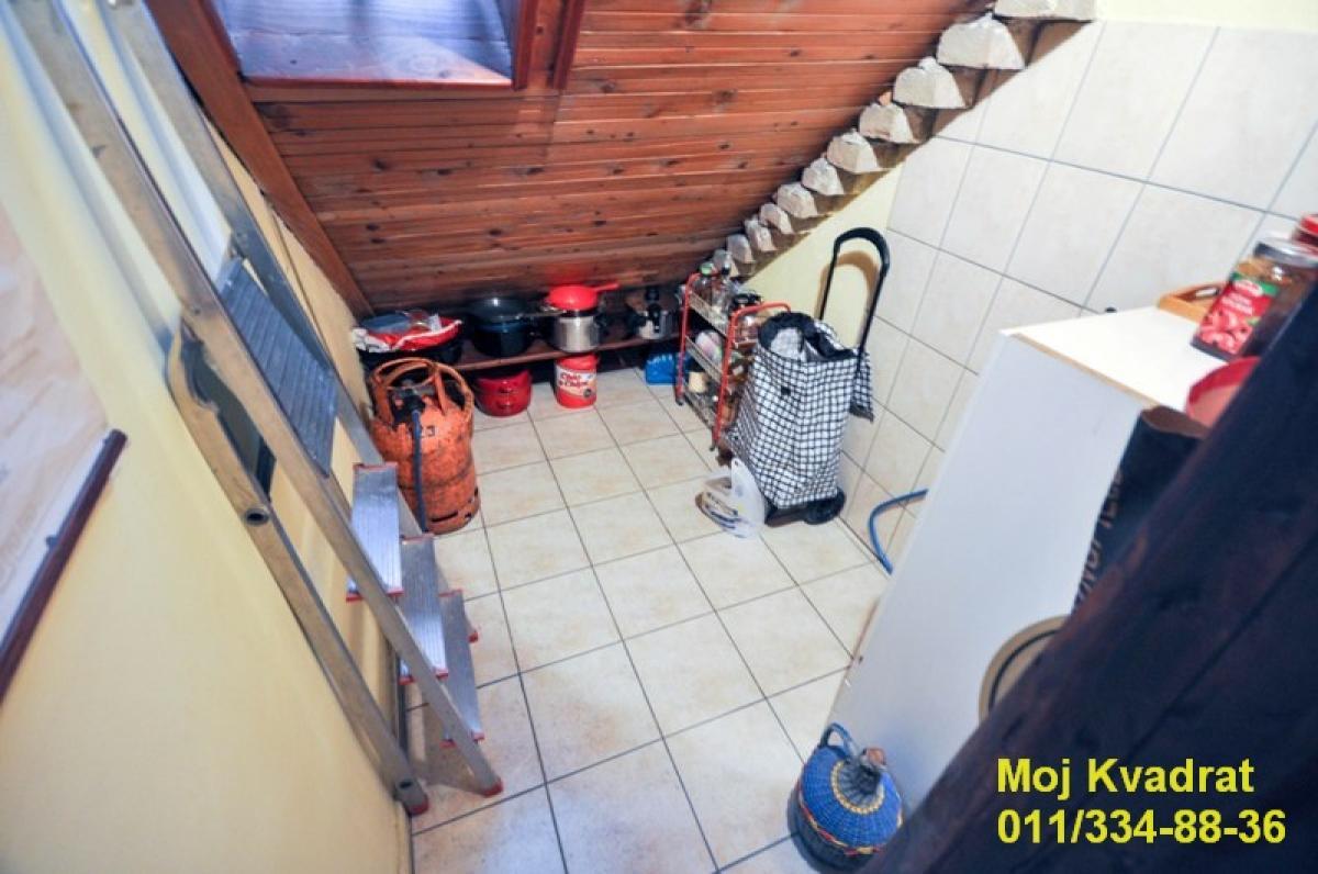 Zemun, Zelena avenija - Miloša Bandića 1.0, 100m2 (terasa 6m2), PTK/2, TA, telefon, interfon, podrum, parking U ponudi sređen stan u potkrovlju porodične kuće. Prostorije: dnevna soba sa trpezarijom, kuhinja, spavaći deo koji je smešten na galeriji, veliko kupatilo i terasa. Postoji mogućnost za još dve spavaće sobe. Krovna konstrukcija na kući je vidljiva, sam krov je pokriven crepom, a ispod njega su izvedeni svi potrebni slojevi kako bi se obezbedila dobra toplotna i hidro izolacija. Stanu pripada i 1/4 dvorišta i dve manje ostave. Parking je u dvorištu i ispred objekta. Za svaku preporuku! Uknjižen na 70m2 korisne površine Agencijska provizija 2% Agent: Mileva Petrović 063/57-16-17 (licenca br.2429)
