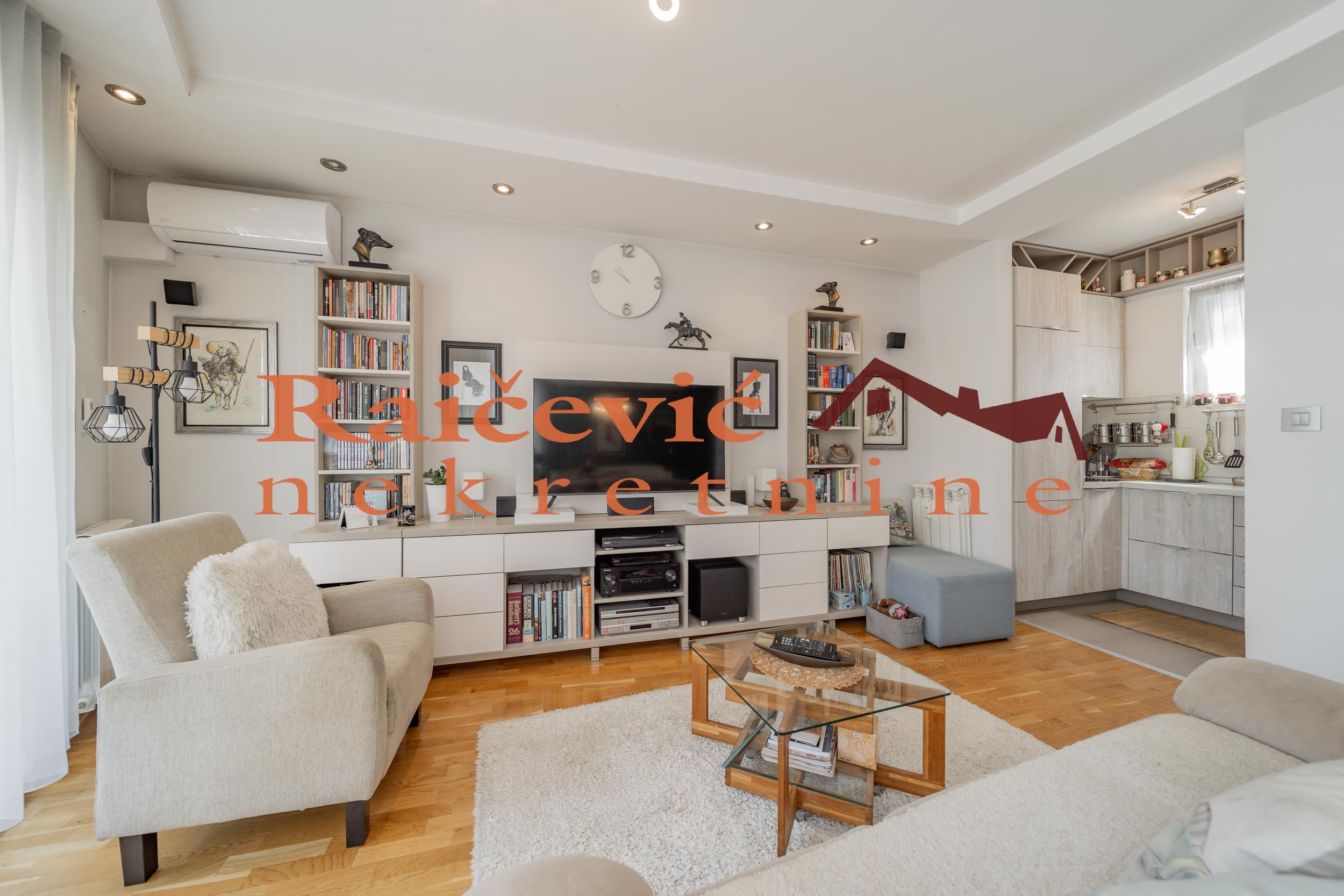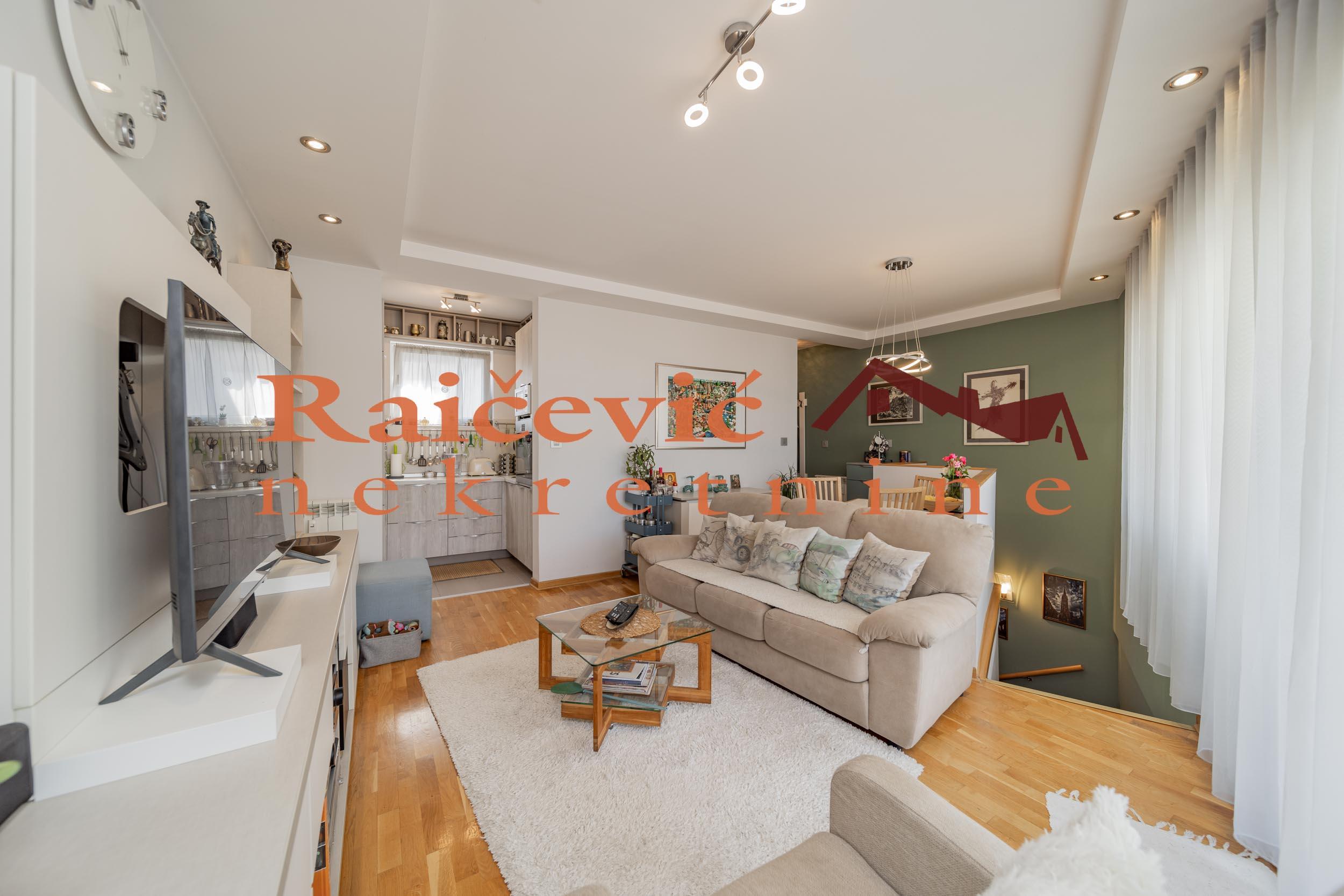 SVI NASI KUPCI DOBIJAJU VREDAN POKLON! Djeram, Sabacka, 3.0, 88 m2 sa terasom i zastakljenom lodjom, IV i V od V spratova, dupleks, cg sa kalorimetrima, lift, interfon, ktv, klima, useljiv po dogovoru, renoviran, namesten, uknjizen na 70 m2, mogucnost kupovine parking mesta u garazi, novogradnja. Fenomenalan porodican stan, novije gradnje, nadomak Djeram pijace. Stan je povrsine 70 m2 stambenog prostora i 18 m2 terase, od cega je 15 m2 pokrivena terasa, a 3 m2 je zastakljena lodja. Veoma je svetao, dvostrano orijentisan. Sastoji se od dva nivoa: I nivo: ulazni hodnik, kupatilo, dve spavace sobe (obe imaju izlaz na lodju), prostorija sa plakarima i zastakljena lodja. II nivo: dnevna soba sa trpezarijom, kuhinja, kupatilo i velika pokrivena terasa. Stan se prodaje kompletno namesten (sa ugradnom kuhinjom, belom tehnikom i namestajem radjenim po meri). Postoji mogucnost kupovine parking mesta u garazi po ceni od 25 000 evra. Ono sto ovaj stan cini izuzetnim je njegova lokacija. Izuzetno povezan sa svim delovima grada - trolejbusi 28 i 40, autobusi 77 i 79, kao i tramvajske linije 5, 6, 7 i 14. Cena 265 000 evra. Kupite ovu nekretninu preko agencije Raicevic nekretnine i POKLANJAMO VAM idejno resenje dizajna enterijera! Pozovite nas za vise informacija. Agencijska provizija koju placa KUPAC iznosi 2 % od dogovorene kupoprodajne cene. Raicevic nekretnine 060/3056065