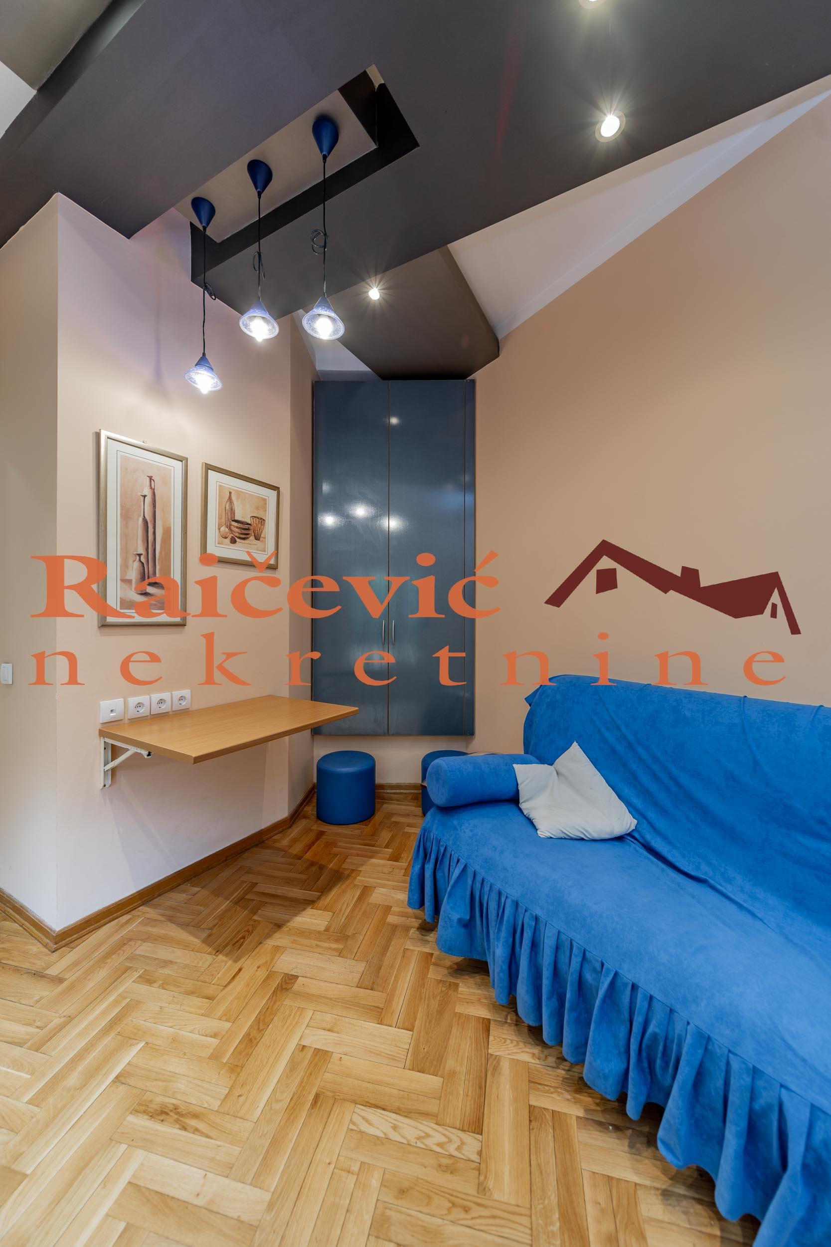 Kalenic, Kursulina, 0.5, 35 m2, terasa, VPR od IV sprata, cg, bez lifta, interfon, ktv, internet, klima, odmah useljiv, renoviran, namesten, uknjizen, starogradnja. Stan se nalazi u dobroj salonskoj zgradi. Izdaje se namesten, u odlicnom stanju, na minimum godinu dana. Odlicno je osvetljen i sa lepim pogledom na zadnji deo zgrade, prema dvoristu, zasticen od buke, u blizini Njegoseve i Makenzijeve ulice, kao i Kalenic pijace i Slavije. Idealan je za poslovanje ili za studente i samce. Niski mesecni troskovi. Cena 460 evra + depozit. Agencijska provizija koju placa ZAKUPAC iznosi: 50 % od prve mesecne zakupnine za zakup u trajanju od 1 do 12 meseci. 75 % od prve mesecne zakupnine za zakup u trajanju od 13 do 59 meseci. 100 % od prve mesecne zakupnine za zakup u trajanju od 60 meseci (5 godina) i vise. prostorije RAICEVIC NEKRETNINE 011/4076384