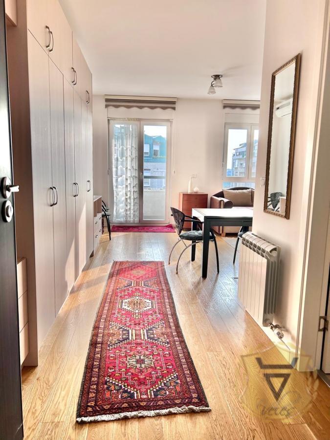 SR - Lux opremljen, namešten stan u novogradnji, veoma svetao i osunčan, jugozapadno okrenut. Kompletno nameštena kuhinja, dnevni boravak, trpezarija. Spavaći deo je u dnevnom boravku. Grejanje centralno, plaćanje po potrošnji. Vlasnik govori ruski može beli karton. ENG - Lux equipped, furnished apartment in a new building, very bright and sunny, southwest facing. Fully furnished kitchen, living room, dining room. The sleeping area is in the living room. Central heating, pay per consumption. The owner speaks Russian and can register at the address. Agencija za nekretnine Veles broj u registru posrednika 1149 Agencijska provizija 50%* Način plaćanja: kirija+depozit+ag.provizija