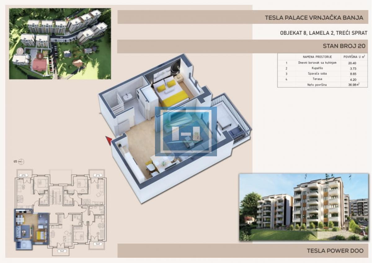- U prodaji agencije Heroldo, stanovi u novogradnji u stambenom kompleksu Tesla Palace u Vrnjačkoj Banji. - Kompleks ima ukupno 8 rezidenciona objekta, 329 stanova, 137 garažnih mesta i 54 spoljnih parking mesta. - Kompleks se nalazi na izuzetnoj lokaciji, odmah uz park "Šetalište Vrnjačka Banja", što vam omogućava direktan pristup prostranim zelenim površinama i stazama za šetanje. U neposrednoj blizini nalaze se i atrakcije poput Japanskog vrta, savršenog za mirne šetnje, kao i Vrnjačkog lavirinta, popularnog mesta za zabavu i istraživanje. Zbog svoje blizine parku Vrnjačke Banje, kompleks je idealan za sve koji žele da uživaju u miru, ali i u aktivnom porodičnom životu. Smešten u mirnom okruženju, poznatom po lekovitim izvorima i prelepim pejzažima, pruža jedinstvenu kombinaciju prirode i opuštanja. - Vizija je stvaranje prostora u kome se savremeni način života spaja sa lepotama koje samo priroda može pružiti. Ovo nije samo mesto za život, već vaš lični izvor inspiracije. - Popusti za keš plaćanje: 20% ima 2% popusta 30% ima 3% popusta 40% ima 4% popusta 50% ima 5% popusta 60% ima 5% popusta 70% ima 5% popusta 80% ima 5% popusta 90% ima 9% popusta