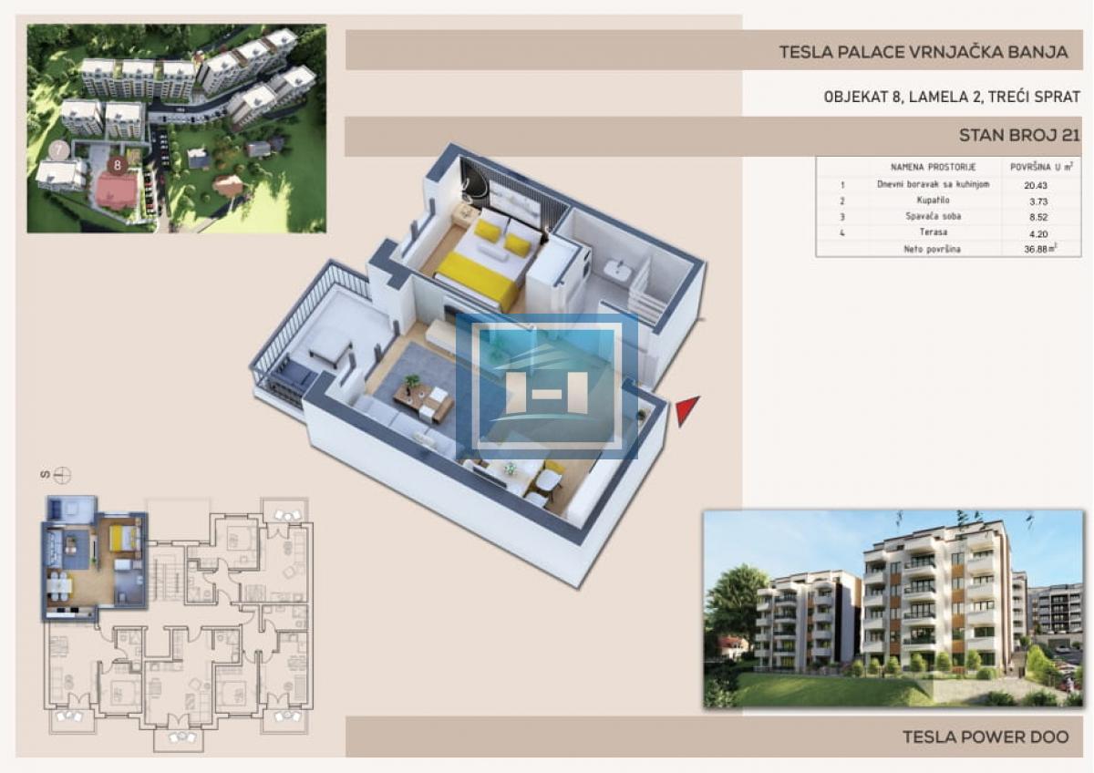 - U prodaji agencije Heroldo, stanovi u novogradnji u stambenom kompleksu Tesla Palace u Vrnjačkoj Banji. - Kompleks ima ukupno 8 rezidenciona objekta, 329 stanova, 137 garažnih mesta i 54 spoljnih parking mesta. - Kompleks se nalazi na izuzetnoj lokaciji, odmah uz park "Šetalište Vrnjačka Banja", što vam omogućava direktan pristup prostranim zelenim površinama i stazama za šetanje. U neposrednoj blizini nalaze se i atrakcije poput Japanskog vrta, savršenog za mirne šetnje, kao i Vrnjačkog lavirinta, popularnog mesta za zabavu i istraživanje. Zbog svoje blizine parku Vrnjačke Banje, kompleks je idealan za sve koji žele da uživaju u miru, ali i u aktivnom porodičnom životu. Smešten u mirnom okruženju, poznatom po lekovitim izvorima i prelepim pejzažima, pruža jedinstvenu kombinaciju prirode i opuštanja. - Vizija je stvaranje prostora u kome se savremeni način života spaja sa lepotama koje samo priroda može pružiti. Ovo nije samo mesto za život, već vaš lični izvor inspiracije. - Popusti za keš plaćanje: 20% ima 2% popusta 30% ima 3% popusta 40% ima 4% popusta 50% ima 5% popusta 60% ima 5% popusta 70% ima 5% popusta 80% ima 5% popusta 90% ima 9% popusta