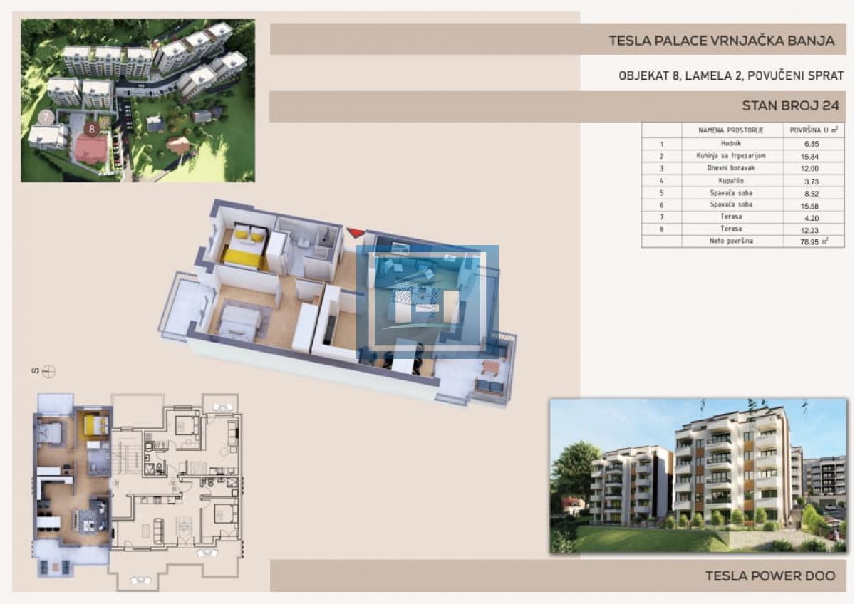 - U prodaji agencije Heroldo, stanovi u novogradnji u stambenom kompleksu Tesla Palace u Vrnjačkoj Banji. - Kompleks ima ukupno 8 rezidenciona objekta, 329 stanova, 137 garažnih mesta i 54 spoljnih parking mesta. - Kompleks se nalazi na izuzetnoj lokaciji, odmah uz park "Šetalište Vrnjačka Banja", što vam omogućava direktan pristup prostranim zelenim površinama i stazama za šetanje. U neposrednoj blizini nalaze se i atrakcije poput Japanskog vrta, savršenog za mirne šetnje, kao i Vrnjačkog lavirinta, popularnog mesta za zabavu i istraživanje. Zbog svoje blizine parku Vrnjačke Banje, kompleks je idealan za sve koji žele da uživaju u miru, ali i u aktivnom porodičnom životu. Smešten u mirnom okruženju, poznatom po lekovitim izvorima i prelepim pejzažima, pruža jedinstvenu kombinaciju prirode i opuštanja. - Vizija je stvaranje prostora u kome se savremeni način života spaja sa lepotama koje samo priroda može pružiti. Ovo nije samo mesto za život, već vaš lični izvor inspiracije. - Popusti za keš plaćanje: 20% ima 2% popusta 30% ima 3% popusta 40% ima 4% popusta 50% ima 5% popusta 60% ima 5% popusta 70% ima 5% popusta 80% ima 5% popusta 90% ima 9% popusta