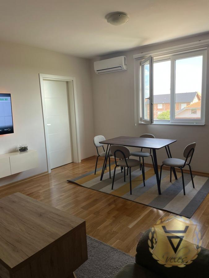 Renoviran, parking mesto u ceni ispred zvrade. Grejanje etazno klima, plus norveski radijatori. Sprat je 2, nema lift. 2 spavaće sobe i u obe sobe se nalazi po bračni krevet. ENG - Renovated, parking space included in the price in front of the building. Heating, air conditioning, plus Norwegian radiators. The floor is 2, there is no elevator. 2 bedrooms and both rooms have a double bed. Agencija za nekretnine Veles broj u registru posrednika 1149 Agencijska provizija 50%* Način plaćanja: kirija+depozit+ag.provizija
