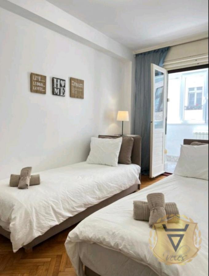 Lux, renoviran stan, prestižna lokacija. Pored hotela Palace. 150 metara od Knez Mihailove, Saborne Crkve, Kalemegdana, brankovog mosta. Komforan, prvi sprat, odvojene dve spavaće sobe hodnikom i dnevnim boravkom, kompletno renoviran. Tehnički opremljen, Wi-Fi, kablovska. Nova bela tehnika kao i svi električni aparati. Video nadzor, dva lifta, interfon, centralno grejanje, hrastov parket, pvc prozori, klimatizovan, toplotna i zvučna izolacija, sigurnosna vrata. Male režije. Moguće iznajmiti parking. Useljiv odmah. ENG - Lux, renovated apartment, prestigious location. Next to the Palace Hotel. 150 meters from Knez Mihailova, the Cathedral Church, Kalemegdan, Branko bridge. Comfortable, first floor, two bedrooms separated by hallway and living room, completely renovated. Technically equipped, Wi-Fi, cable. New white goods as well as all electrical appliances. Video surveillance, two elevators, intercom, central heating, oak parquet, PVC windows, air conditioning, heat and sound insulation, security door. Small overheads. It is possible to rent a parking lot. Available immediately. Agencija za nekretnine Veles broj u registru posrednika 1149 Agencijska provizija 50%* Način plaćanja: kirija+depozit+ag.provizija