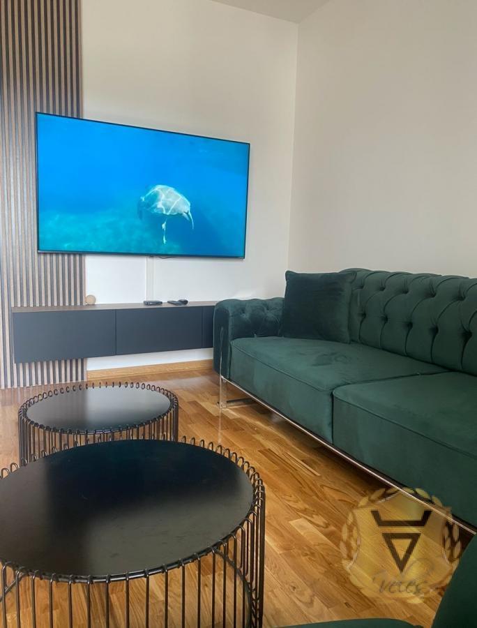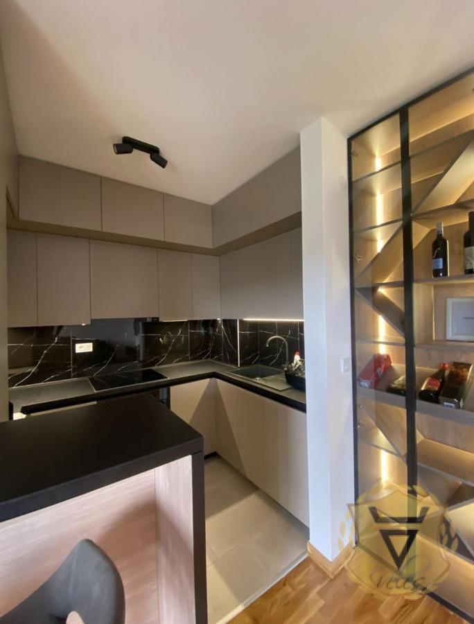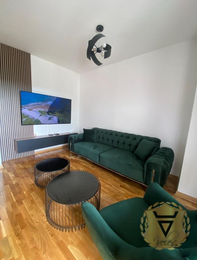 Nalazi se u okviru novog kompleksa Green Residence, komforan, sastoji se od dnevnog boravka sa trpezarijom i kuhinjom, odvojenom spavaćom sobom, kupatila i terasa sa prelepom panoramom, grejanje je po utrošku, a zgrada poseduje fizičko-tehničko obezbeđenje i video nadzor. Može mala korekcija cene za godišnju uplatu stanarine. Kompleks sa sportskom dvoranom i teretanom. U sklopu zgrade lokali, veoma luksuzno sređen stan po rešenju dizajnera i arhitekte, luksuzno i moderno opremljen veoma kvalitetnim nameštajem i tehnikom. ENG - It is located within the new complex Green Residence, comfortable, consists of a living room with a dining room and kitchen, a separate bedroom, a bathroom and a terrace with a beautiful panorama, heating is according to consumption, and the building has physical and technical security and video surveillance. A small price adjustment for the annual rent payment is possible. Complex with sports hall and gym. Within the bar building, a very luxuriously arranged apartment designed by a designer and architect, luxuriously and modernly equipped with high-quality furniture and appliances. Agencija za nekretnine Veles broj u registru posrednika 1149 Agencijska provizija 50%* Način plaćanja: kirija+depozit+ag.provizija