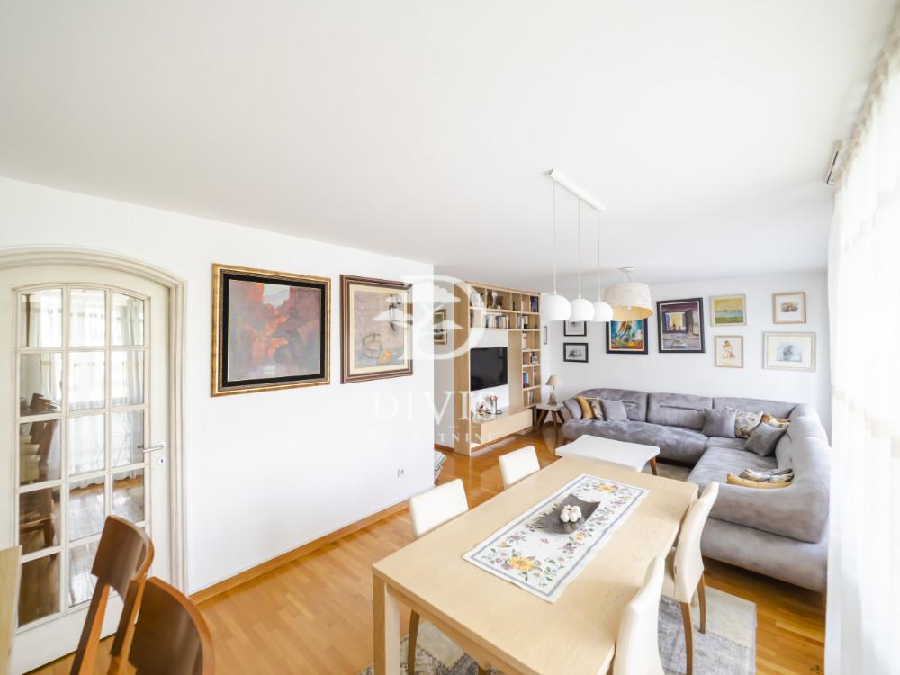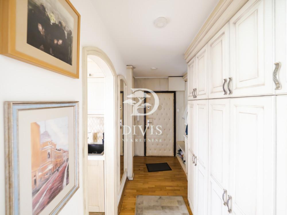 Na prodaju odličan četvorosoban stan na trećem spratu kvalitetno građene stambene zgrade iz 1994. godine, sa liftom u ulici Bulevar Zorana Đinđića, na Novom Beogradu. Zgrada se nalazi u mirnom delu ulice, okružena zelenilom i parkovima, što ovu lokaciju čini idealnim mestom za porodični život. Stan se sastoji od ulaznog hodnika, prostranog dnevnog boravka sa trpezarijom, odvojene kuhinje, tri spavaće sobe, dva kupatila, ostave i zastakljene lođe. Stan je funkcionalnog rasporeda, dvostrano orijentisan i prirodno osvetljen tokom celog dana. Unutrašnja stolarija je drvena, dok je spoljašnja kombinacija aluminijuma i drveta. Grejanje je centralno, što obezbeđuje stabilnu temperaturu i udibnost tokom cele godine. Stan poseduje ostavu u okviru zgrade. Stan je uknjižen na 98m2, a sa zastakljenom lođom ima ukupno 103m2. Bez tereta i zabeležbi. Pogledajte i našu ponudu stanova na Novom Beogradu. Posrednička naknada se obračunava prema Opštim uslovima poslovanja agencije DIVIS NEKRETNINE DOO.