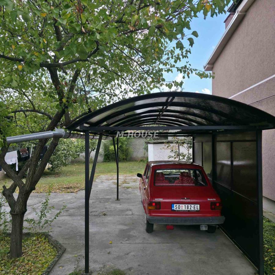 Predstavljamo Vam prizemnu kuću u Somboru, izgrađenju 2014. godine. Kuća je površine od 93m2, a nalazi se na placu veličine od 397m2. Pored kuće, na placu se nalazi još i natkrivena terasa sa ostavom, kao i nastrešnica za auto. Kuća se sastoji od dve spavaće sobe, hodnika, dnevnog boravka sa kuhinjom, špajza i kupatila. Kuća je zidana ciglom, postavljena je i fasada. Na podu se nalaze laminat i pločice. Grejanje na termo peći, mogućnost priključka gasa. Gradska voda, kanalizacija, struja. PVC stolarija. Kuća se prodaje prazna. Udaljena od centra grada na svega 1km. Za sve dodatne informacije, možete nas kontaktirati.