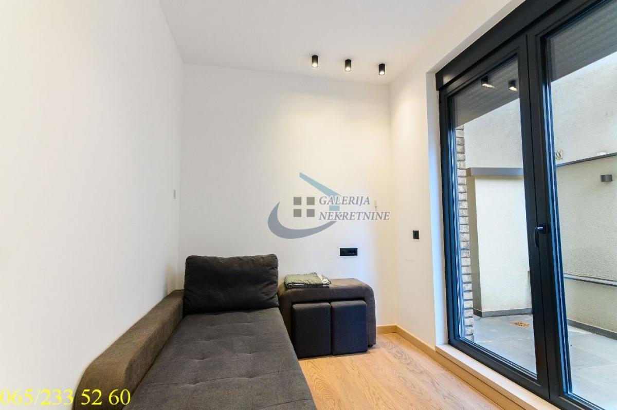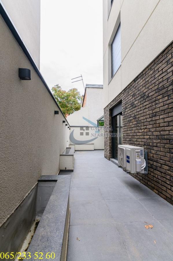 3.0, 54m2, dvorište 80m2, LUX, pr/4, lift, podno grejanje, ktv, klima, video nadzor, garaža Stan se nalazi na Lekinom brdu, u mirnoj, jednosmernoj Petrovaradinskoj ulici kod ugla sa ulicom Grčića Milenka, blizu parka Šumice. Kraj je kompletno infrastrukturno pokriven. U prilici smo da vam ponudimo trosobni lux stan na prizemlju četvorospratnice sa liftom izgrađene iz 2024. godina. Zgrada je vrlo kvalitetno zidana i ugrađeni su vrhunski materijali i oprema. Dobro je održavana pa je i dalje kao nova. Stan je dvostrano orijentisan i svetao. Prostorije su vrlo funkcionalno raspoređene. Ogromna pogodnost je pripadajuće ograđeno dvorište od 80m2 koje se proteže oko celog stana i koje ima odvojeni diraktan ulaz i video nadzor i osvetljenje. Deo dvorišta je nadkriven kaljenim staklom. Zatvaranjem ili zastakljivanjem dela dvorišta može da se dobije dodatna prostorija, npr. zimska bašta, letnja kuhinja, itd. Svaka soba ima direktan izlaz u dvorište. Stan je vrlo luksuzno dizajniran, opremljen i namešten po meri. Perfektno urađen do najsitnijih detalja. Visina plafona od 2,9m dodatno doprinosi osećaju prostranosti i komfora. Prodaje se kompletno i vrhunski opremljen i namešten. Ugrađene su električne roletne, troslojni vrhunski parket, dve klime, Haier uređaji, vrhunska troslojna stolarija, protočni bojler, itd. Vrlo korisno, u dvorištu se nalazi prostorija koja je namenjena smeštaju veš mašine, mašine za sušenje i sl. Grejanje je podno na struju. Postoji mogućnost kupovine garažnog mesta na klackalici, diretno od investitora. Od prostorija: Ulazni hodnik, dnevni boravak, kuhinja, kupatilo, hodnik, dve spavaće sobe i dvorište. Uknjižen na 54m2 uz ekskluzivno pravo korišćenja dvorišta od 80m2. Agent prodaje: Isak Marčetić 064/167 53 81