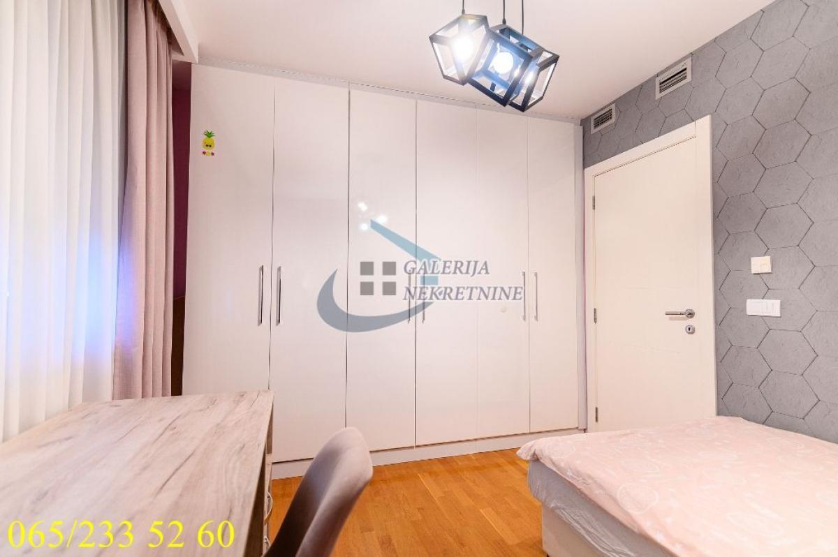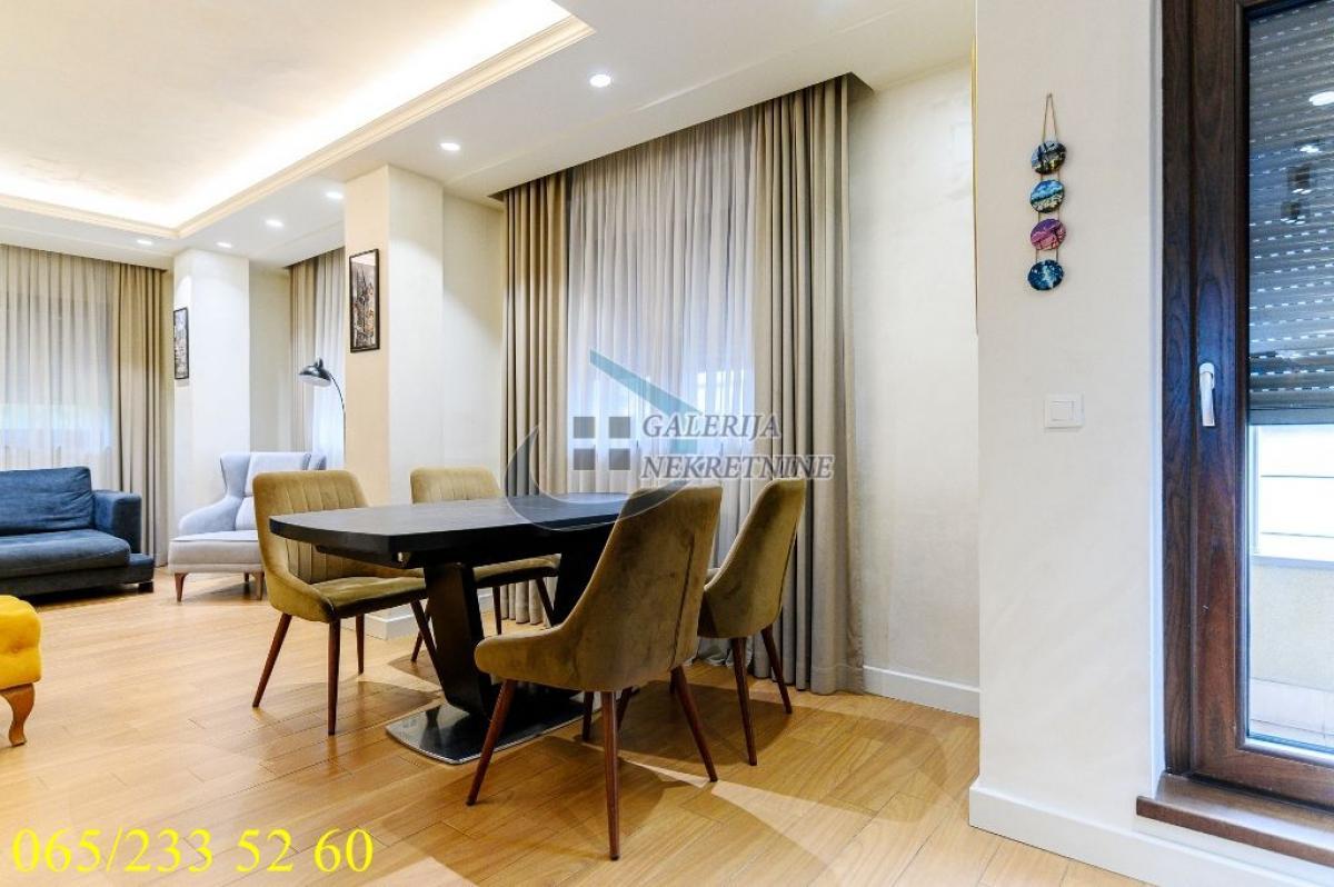 3.5, 97m2 (dve lođe), 3/4,lux, CG, geotermalno grejanje i hlađenje, lift, video nadzor, internet, interfon, ktv, garažno mesto po dodatnoj ceni Vračar je jedna od najlepših Beogradskih opština sa kompletno razvijenom infrastrukturom, zbog čega je uvek bila vrlo popularna za stanovanje. Kupovina stana na ovoj lokaciji se oduvek smatrala sigurnom investicijom. Zgrada se nalazi u mirnoj ulici Svetozara Gligorića (nekadašnja Dubljanska) na 200m od Hrama Svetog Save. U prilici smo da Vam ponudimo izuzetno komfornu i luksuznu nepokretnost, modernog i funkcionalnog rasporeda. U pitanju je troiposoban stan koji se nalazi na trećem spratu novije četvorospratne zgrade, u perfektnom stanju, sa liftom i video nadzorom. Stan, zgrada i prostor oko zgrade su do najsitnijih detalja osmišljeni i uređeni vrlo luksuzno i kvalitetno. Dvostrano orijentisan, izuzetno konforan, svetao i bez buke. Dve lođe predstavljaju veliku pogodnost i mesto za uživanje. U stanu je ugrađena najkvalitetnija spoljašnja AL-drvo stolarija, unutrašnja stolarija, parket, keramika i sanitarije. Klimatizovan je najmodernijom, vrlo ekonomičnom, kombinacijom geotermalne energije i fan-coil sistemom, sa grejanjem i hlađenjem preko zidova i podova, pa su računi minimalni. Uz stan se prodaje garažno mesto u podzemnoj garaži u zgradi, sa rampom i širokim ulazom, po ceni od 40000EUR. Ova nepokretnost predstavlja jedinstvenu priliku za kupce koji žele noviju, luksuznu nekretninu, vrhunskog kvaliteta na jednoj od najelitnijih lokacija u gradu sa rešenim parkingom. Od prostorija: predsoblje, dnevni boravak objedinjen sa trpezarijom, kuhinja, hodnik, tri spavaće sobe, dva kupatila, ostava/garderober, dve lođe. Uknjižen na 97m2. Brzo useljiv. Kontakt: 065/ 233 52 60