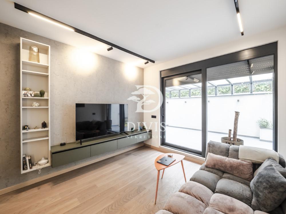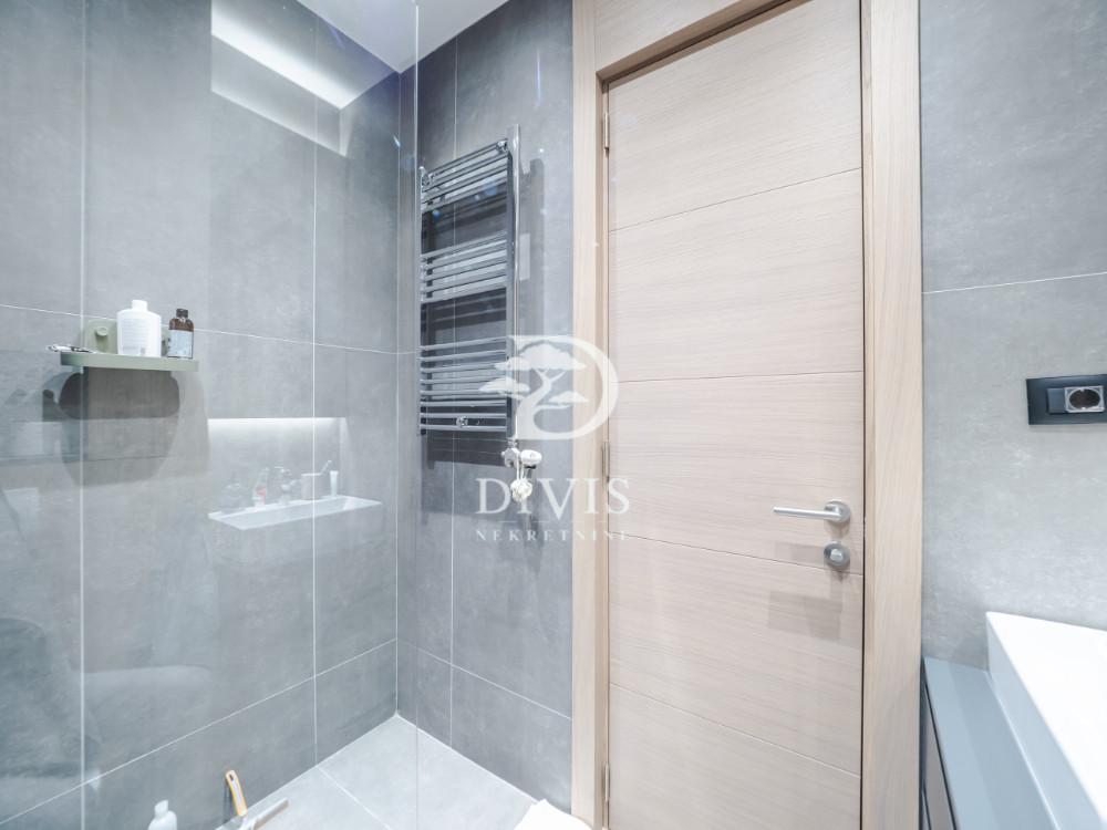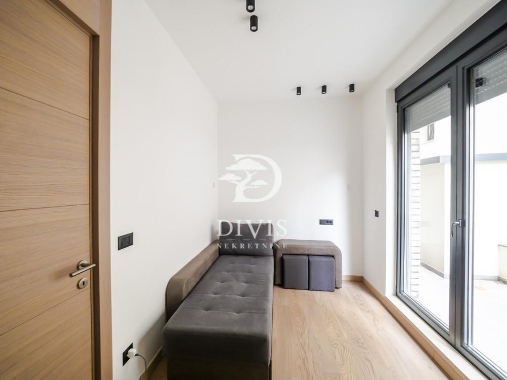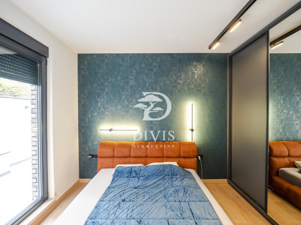 Prodaje se luksuzan dvoiposoban stan na Lekinom brdu, u mirnoj ulici površine 54m2. Stan se nalazi na prizemlju kvalitetne novogradnje i raspolaže funkcionalnim rasporedom: predsoblje, kupatilo, trpezarija sa kuhinjom u open space konceptu, dnevni boravak sa izlazom na terasu, velika i mala spavaća soba sa izlazom na prostranu terasu od 80 m2, kao i dodatna prostorija – vešernica. Stan je opremljen vrhunskim materijalima i modernom opremom: kuhinja, ugradni plakari, rasveta, podno grejanje sa regulacijom, sistem obezbeđenja. Unutrašnji enterijer je sofisticiran, sa toplim i prijatnim ambijentom. Zgrada se nalazi u mirnom i uređenom stambenom bloku sa kompletnom infrastrukturom – prodavnicama, javnim prevozom i blizinom parka Šumice. Postoji mogućnost kupovine garažnog mesta u objektu. Stan je uknjižen 1/1, odmah useljiv i odličan kako za porodični život, tako i kao investicija. Posrednička naknada se obračunava u skladu sa Opštim uslovima poslovanja agencije ''DIVIS NEKRETNINE'' d.o.o