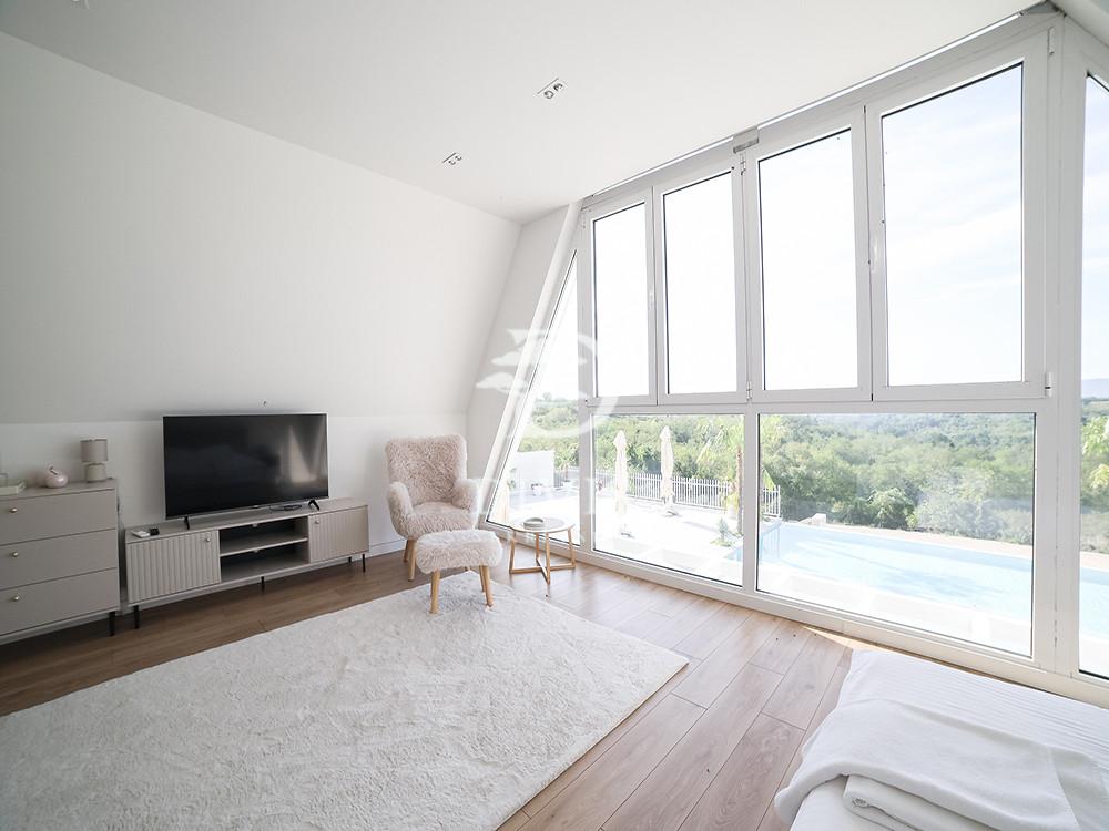 Na prodaju moderna vila smeštena na brežuljku u mirnom i izolovanom delu Šumadije, na samo 30 minuta vožnje od Beograda. Idealna je za život, odmor, organizaciju događaja ili kombinaciju stambenog i poslovnog korišćenja. Kuća je izgrađena početkom 2025. godine, sa pažljivo biranim savremenim materijalima i arhitekturom koja kombinuje funkcionalnost i estetiku: aluminijumska stolarija (najsavremeniji profili), bronza-reflektujuća stakla, vrhunska termo i zvučna izolacija, skrivena „integra“ sobna vrata, kvalitetni podovi, sistem grejanja na toplotne pumpe, video nadzor, interfon, kapije na daljinsko upravljanje. Kuća se nalazi na placu površine 29 ari i sastoji od prizemlja i sprata. Prizemlje čini otvoren prostor koji obuhvata kuhinju sa trpezarijom, dnevni boravak, predsoblje i kupatilo, dok su na spratu tri spavaće sobe i dva kupatila. U drugom delu kuće nalazi se sala za proslave kapaciteta 130 ljudi, sa pomocnom prostorijom i toaletima za goste. U dvorištu se nalazi veliki prelivni bazen sa tri segmenta, plato ispred kuce i bazena koji se najčešće koristi za organizovanje proslava u letnjem periodu (kapaciteta i do 200 ljudi), kao i letnjikovac od 63m2 sa izvedenim strujnim instalacijma, kupatilom i ostavom. Dva parkinga za oko 50 automobila. Nekretnina već funkcioniše kao uspešan objekat za izdavanje. Cena dnevnog najma: 800 – 1.600 €, u zavisnosti od tipa događaja i broja gostiju. Postoji razrađen poslovni model i stalna klijentela. Posrednička naknada se obračunava u skladu sa Opštim uslovima poslovanja agencije ''DIVIS NEKRETNINE'' d.o.o