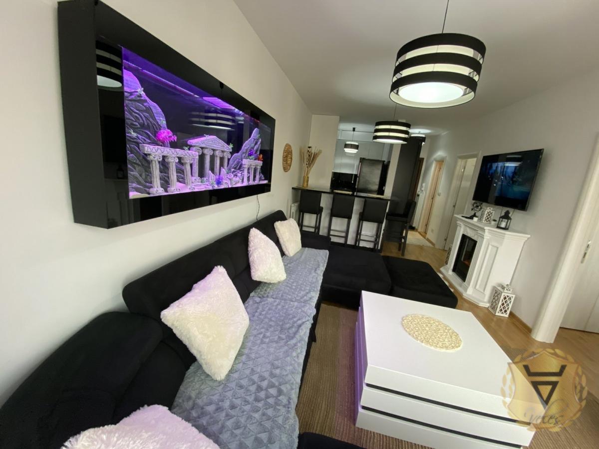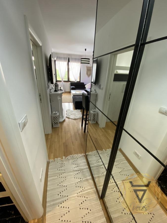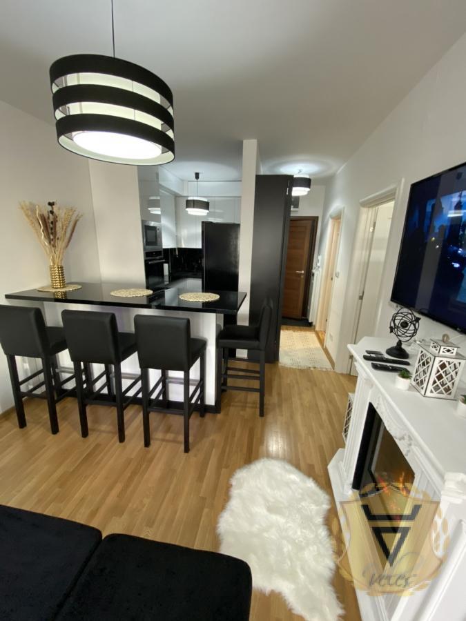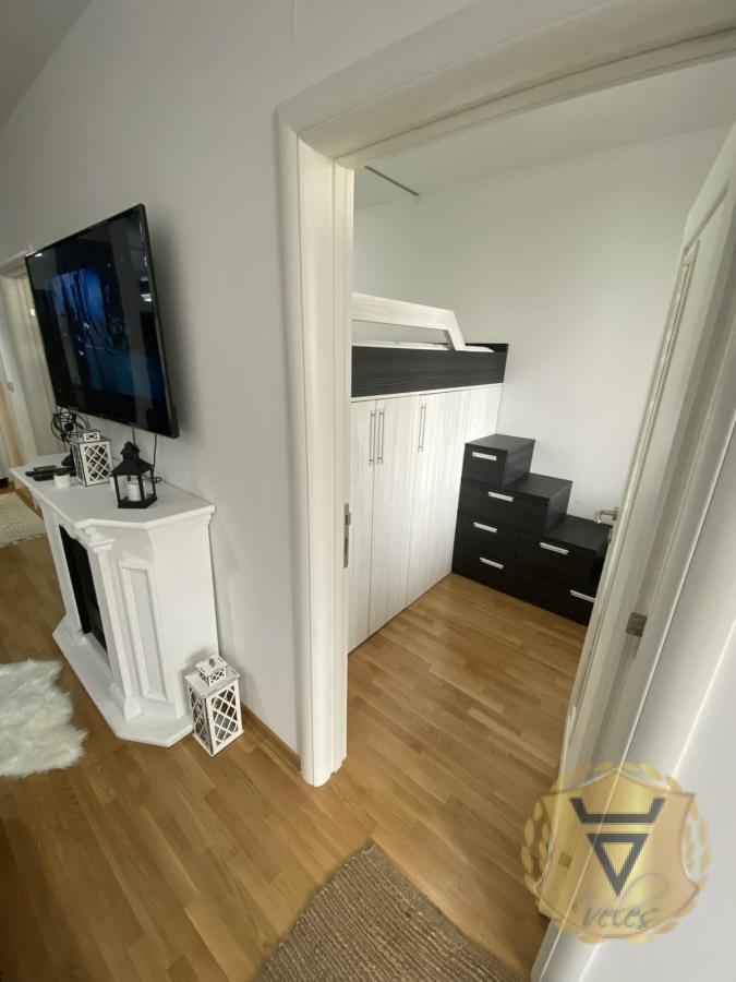 Lux opremljen, sve se vidi na slikama a saljem i video snimak. Troškovi minimalni. Spavaća soba može da se podeli na 2 dečije, moze da bude i kao veliki francuski a ako uzimate na duži period može potpuno nova soba. Visina stana 280 cm. Doplata za garažu 50e ENG - Luxuriously furnished, everything can be seen in the pictures. Costs minimal. The bedroom can be divided into 2 children's rooms.