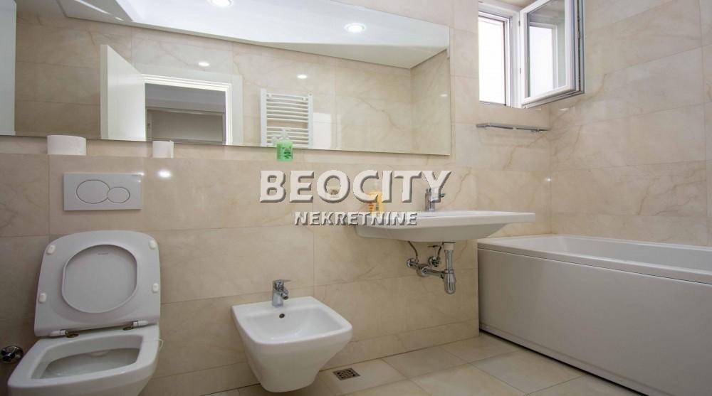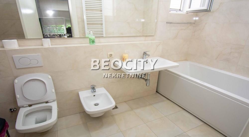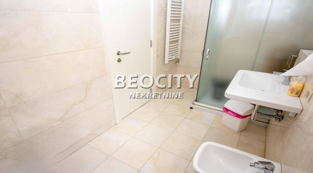 Agencijski ID: 123974, 2/, lift, parking, podrum. Izdaje se komforan četvorosban stan-ima tri spavaće sobe od toga jedna master spavaća soba, veliku dnevenu sobu sa odvojenom kuhinjom. Stan je polunamešten, sa ugradnim plakarom na ulazu, opremljenom kuhinjom i ugradnom tehnikom i veš mašinom. Sve je ispravno i radi. Dva kupatila - u jednom kada, u drugom tuš, i jedan gostinjski wc. Stan ima veliku terasu, visoke plafone, električne roletne, grejanje je na gas, U cenu zakupa ulaze dva parking mesta u garaži i jedna ostava. Može se zakupiti i kao poslovni prostor. Agencijska provizija 50% od jedne zakupnine. Telefoni: 060/555-3901 • 011/319-2323.