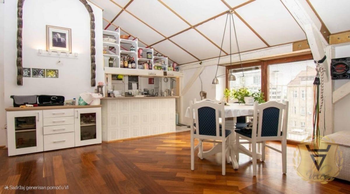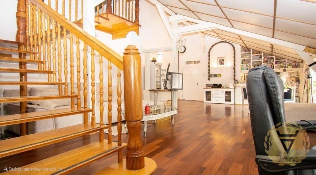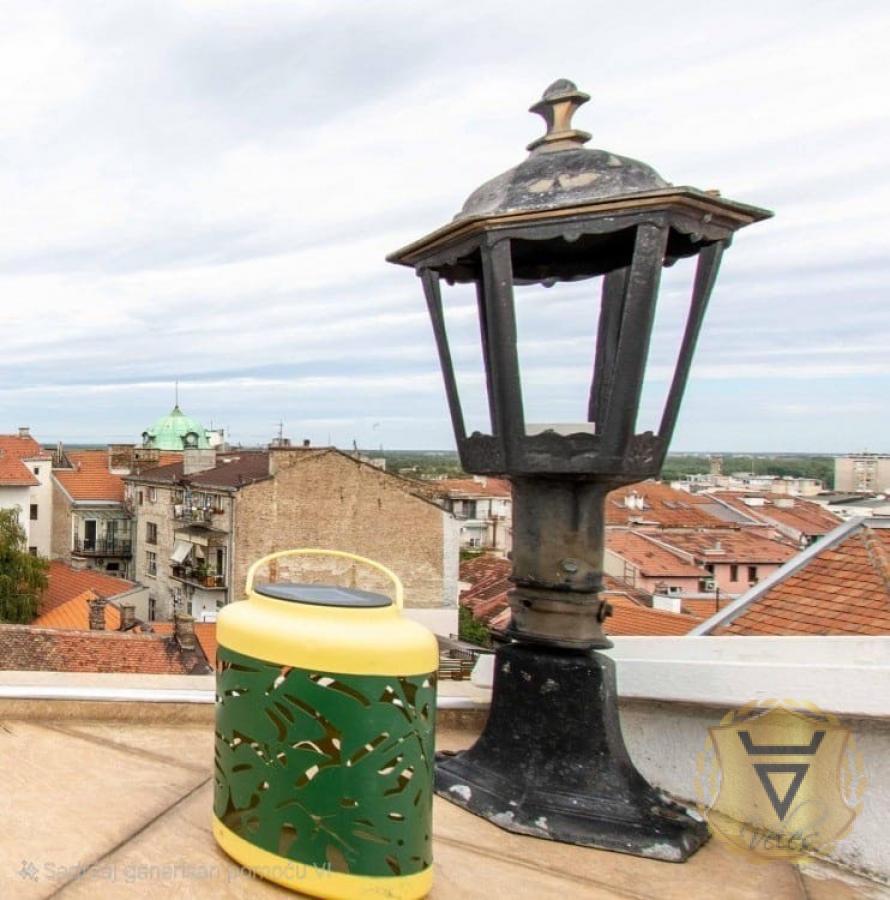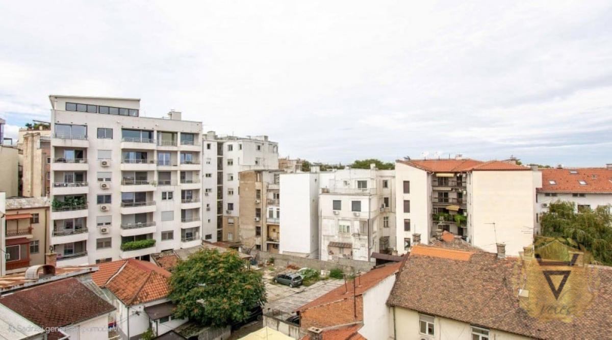 Izdaje se moderan penthaus u samom centru Beograda, blizu Kalemegdana i Knez Mihailove, površine 110 kvadratnih metara. Stan ima i terasu od 15 kvadrata, koja ne ulazi u tu kvadraturu. Prostran, svetao i sunčan, sa dušom stare gradske zgrade i pogledom koji se ne zatvara ničim. Stan je dvostrano orijentisan – prema ulici i unutrašnjem dvorištu, kompletno opremljen. Organizovan je u dva nivoa, ali funkcionalno čini jedinstven i skladan prostor. Donji nivo, sa francuskim balkonima, čini veliki dnevni boravak sa kuhinjom otvorenog tipa, pod plafonom visine do šest metara. Gornji nivo je miran i tih, sa dve spavaće sobe, kupatilom i terasom sa koje se pruža lep pogled na Beograd. Podovi su od autentičnog afričkog drveta, a dodatni akcenat daje drveno stepenište. Režije povoljne, uredan, poslušan pas dobrodošao. Stan se nalazi u stambenoj zgradi stare gradnje, sa očuvanom fasadom i mermernim ulazom. ENG - A modern penthouse for rent in the very center of Belgrade, near Kalemegdan and Knez Mihailova, with an area of 110 square meters. The apartment also has a terrace of 15 square meters, which is not included in that square footage. Spacious, bright and sunny, with the soul of an old town building and a view that is not blocked by anything. The apartment is oriented on both sides - towards the street and the inner courtyard, fully equipped. It is organized in two levels, but functionally it forms a unique and harmonious space. The lower level, with French balconies, consists of a large living room with an open kitchen, under a ceiling up to six meters high. The upper level is calm and quiet, with two bedrooms, a bathroom and a terrace with a beautiful view of Belgrade. The floors are made of authentic African wood, and an additional accent is given by a wooden staircase. Directions favorable, tidy, obedient dog welcome. The apartment is located in an old residential building, with a preserved facade and a marble entrance. Agencija za nekretnine Veles broj u registru posrednika 1149 Agent Jasmina broj posrednika 3151* Agencijska provizija 50%* Način plaćanja: kirija+depozit+ag.provizija
