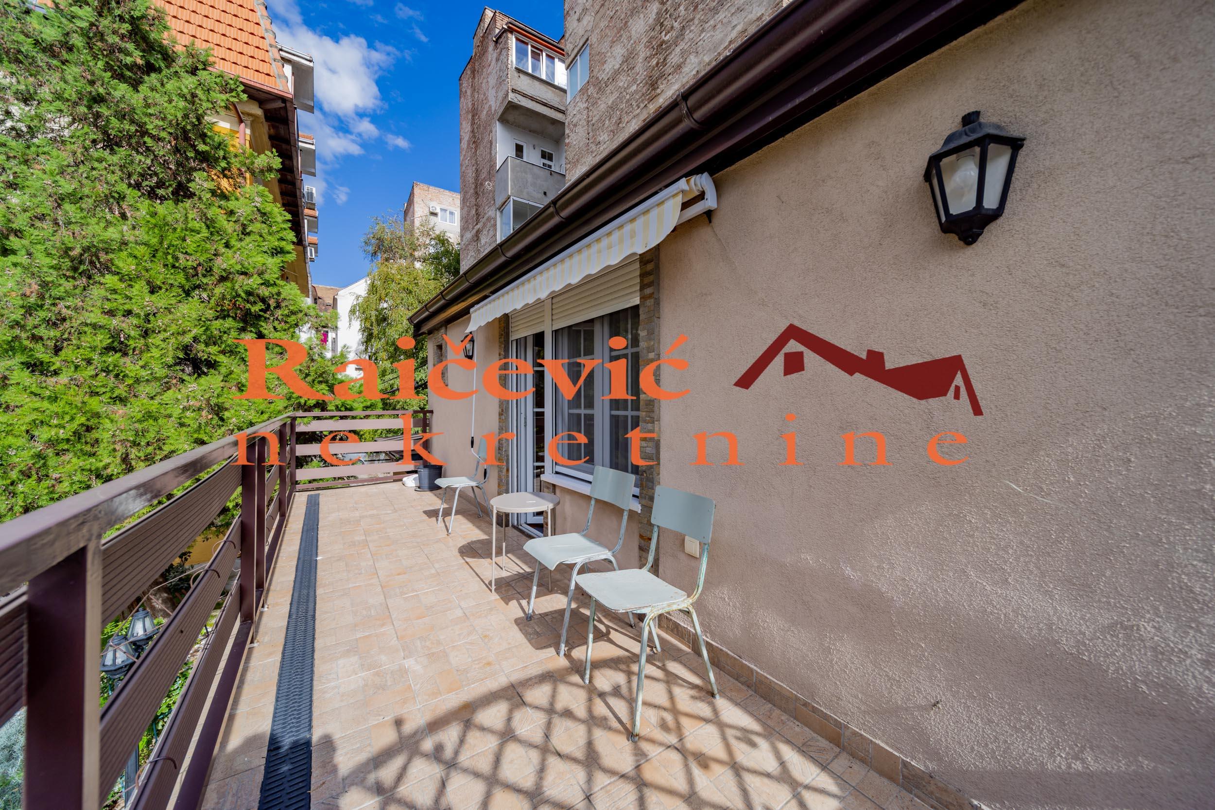 Cvetni trg, Krunska, 2.0 kuca od 80 m2 sa terasom, dvoriste, PR + I, podno grejanje, bez lifta, interfon, ktv, klima, parking mesto u dvoristu, namestena. Na prestiznoj lokaciji, u Krunskoj ulici, iznajmljujemo izuzetno atraktivnu, udobnu i funkcionalnu manju kucu na dva nivoa. Kompletno je namestena. U prizemlju se nalaze dnevni boravak, kuhinja i jedan mokri cvor. Na gornjem nivou nalazi se spavaca soba, kupatilo i izlaz na veliku terasu. Kucica se nalazi u dubini lepog i uredjenog dvorista, u svetlom i tihom okruzenju. Jedinstvena i autenticna nekretnina u odlicnom je stanju, kompletno i kvalitetno renovirana. Iznajmljuje se na duzi period. Cena 1 300 evra + depozit. Agencijska provizija koju placa ZAKUPAC iznosi: 50 % od prve mesecne zakupnine za zakup u trajanju od 1 do 12 meseci. 75 % od prve mesecne zakupnine za zakup u trajanju od 13 do 59 meseci. 100 % od prve mesecne zakupnine za zakup u trajanju od 60 meseci (5 godina) i vise. prostorije Raicevic nekretnine 063/380184