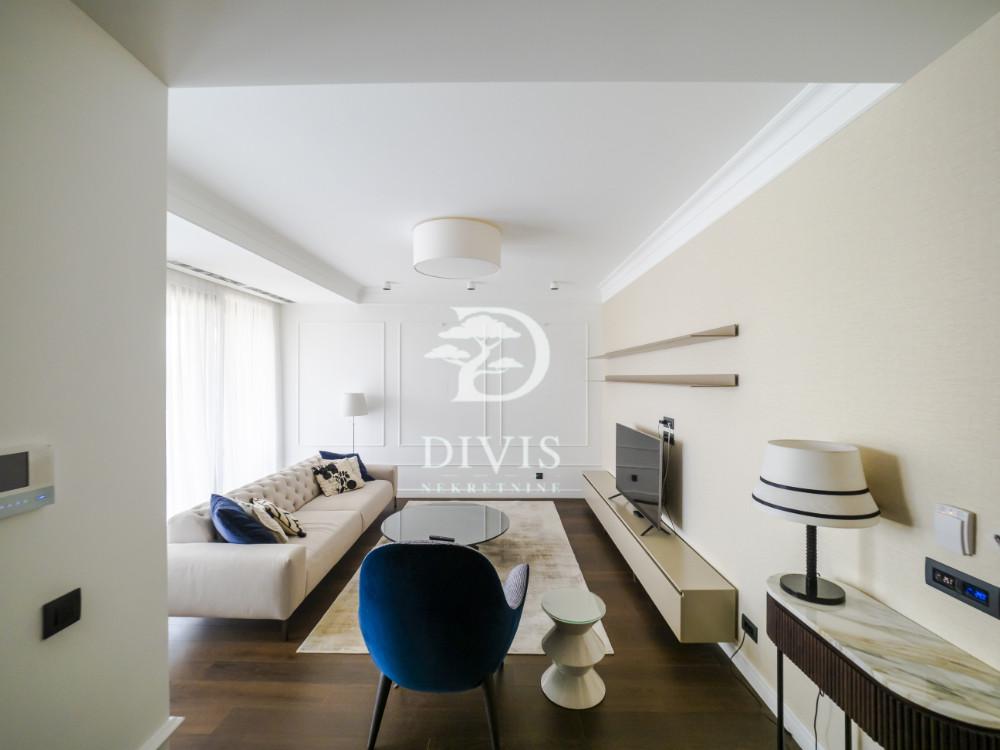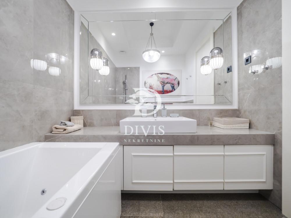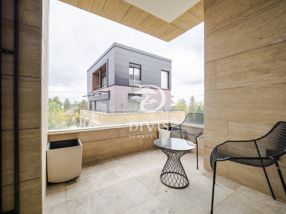 Izdaje se luksuzan trosoban stan na Dedinju, u ulici Koste Racina, jednoj od najlepših i najmirnijih ulica ovog prestižnog naselja. Stan se nalazi u moderno projektovanoj zgradi vrhunskog kvaliteta, sa obezbeđenjem, bazenom i teretanom namenjenim isključivo stanarima. Stan je moderno opremljen i funkcionalno organizovan. Dnevni deo čini prostran open space koncept sa dnevnim boravkom, trpezarijom i kuhinjom, dok je spavaći blok odvojen i sadrži dve komforne spavaće sobe i dva kupatila. Pored toga, u stanu se nalazi i ostava koja dodatno povećava komfor. Stan je izuzetno svetao, sa velikim staklenim površinama i terasom sa koje se pruža predivan panoramski pogled na Beograd. U cenu zakupa uključeno je jedno garažno mesto u okviru objekta. Ovaj stan je idealan izbor za diplomate, porodice i poslovne ljude koji žele da uživaju u spoju luksuza, mira i komfora, u jednom od najprestižnijih delova Beograda.