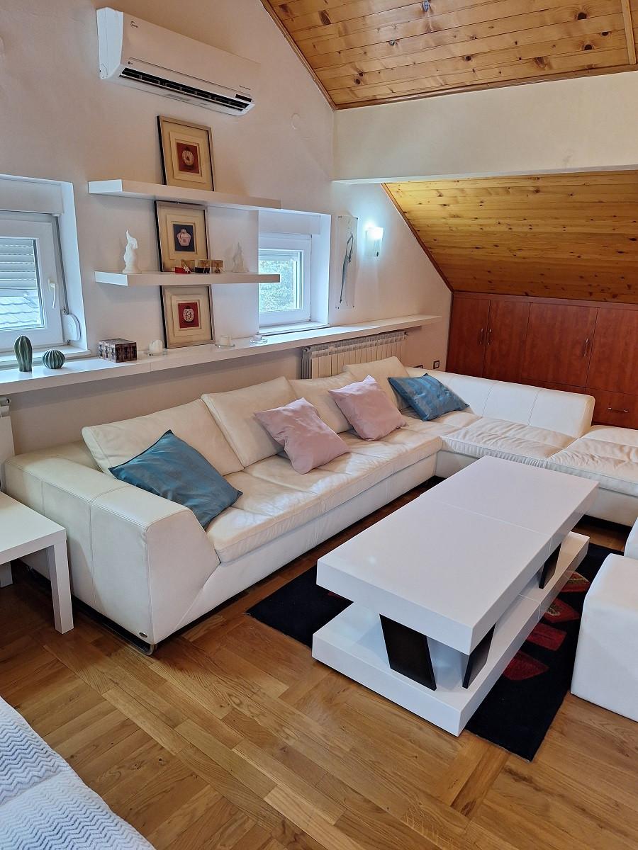 Izdaje se prostrana porodična kuća u naselju Mirijevo, površine 270 m², smeštena na mirnoj lokaciji u neposrednoj blizini Zvezdarske šume, na placu od 2.5 ara. Idealna je za miran i komforan život, okružena zelenilom, a ujedno dobro povezana sa gradom. Kuća se sastoji od tri etaže i to prizemlja, sprata i potkrovlja. Raspored prostorija uključuje: šest soba, dve kompletno opremljene kuhinje, tri kupatila (po jedno na svakoj etaži), tri terase, podrumski prostor u kom se nalazi sa kotao na pelet. Mogućnost grejanja na struju, inverter klima uređaji na svakom spratu. Garažno mesto u okviru kuće i opcija za 1–2 parking mesta ispred. Kapija na daljinsko upravljanje. Sistem za automatsko zalivanje dvorišta. Internet, TV i fiksna linija. Alarmni sistem povezan sa službom obezbeđenja (Securitas), sef za odlaganje dragocenosti. Depozit u visini jedne mesečne kirije. Dugoročni zakup poželjan. Kuća je funkcionalna, svetla, i poseduje sve što je potrebno za udoban i bezbedan život. Idealna je za porodice ili kao poslovni prostor. Posrednička naknada je u skladu sa Opštim uslovima poslovanja Posrednika "DIVIS NEKRETNINE" d.o.o.