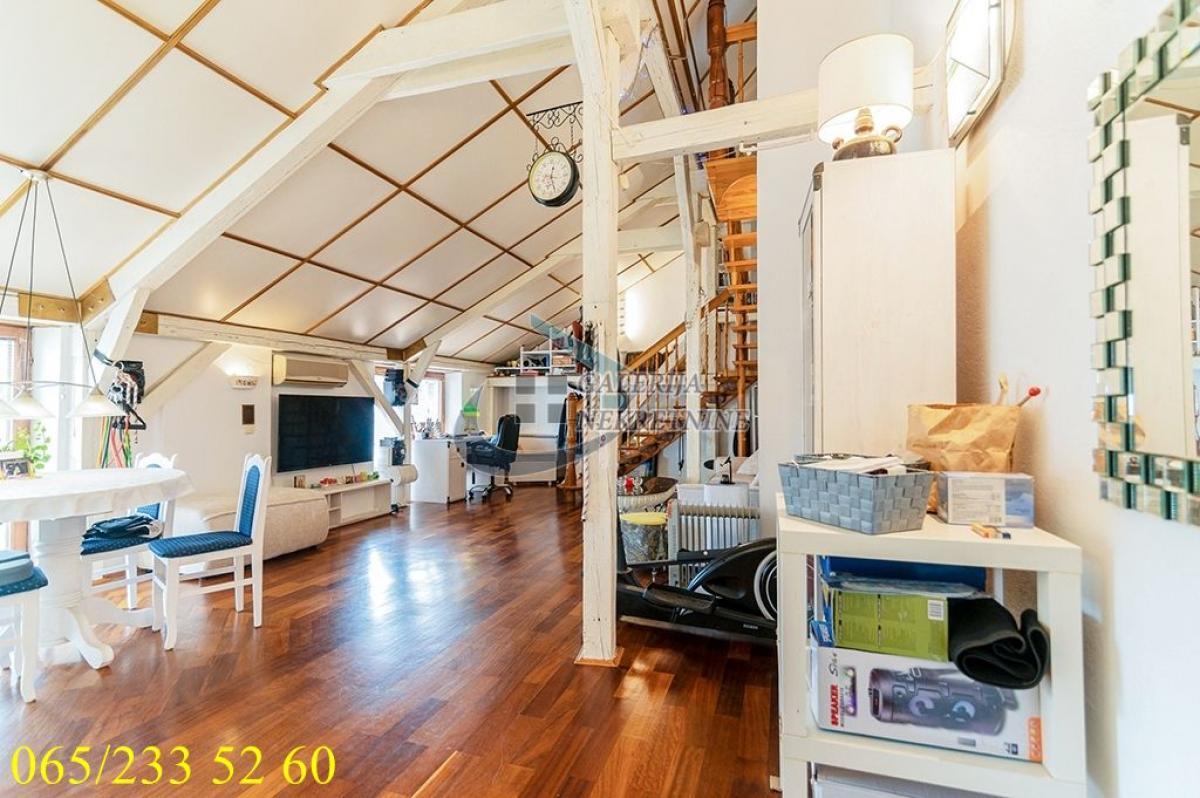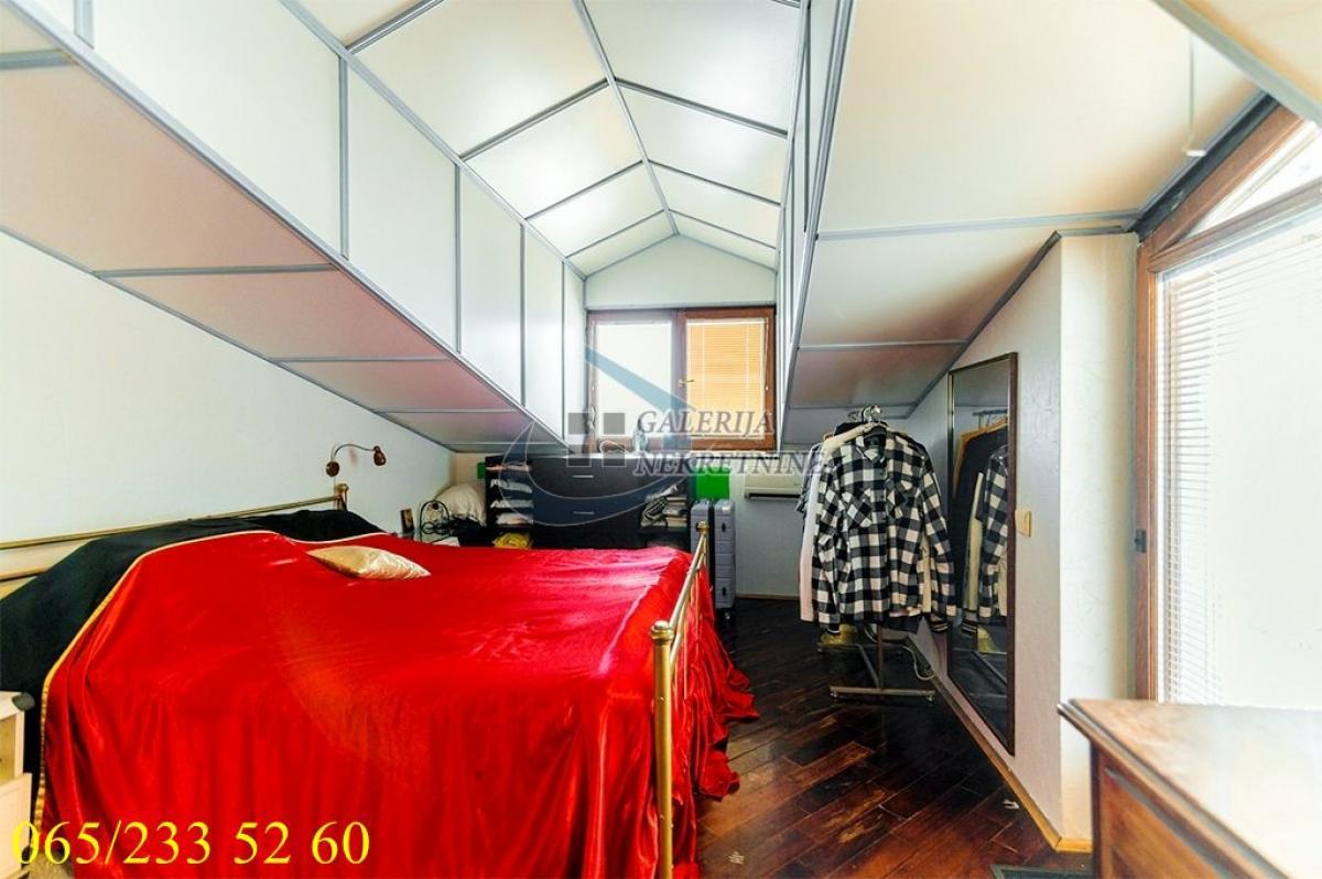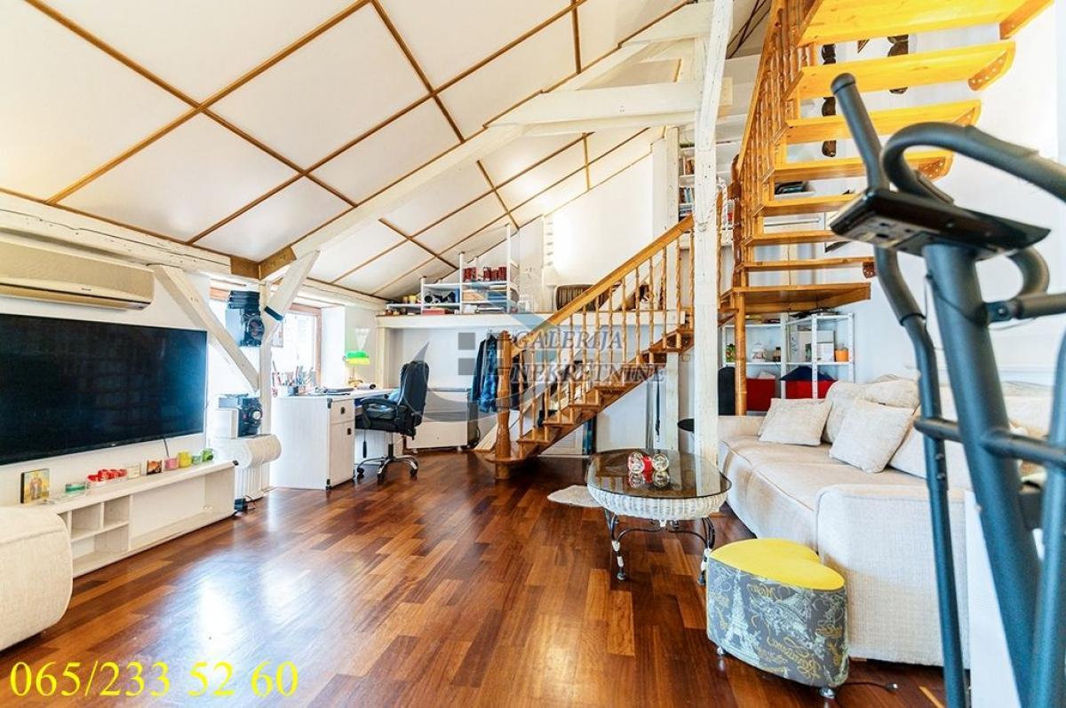 3.0, 110m2 + terasa 15m2, 4/4, duplex, TA, interfon, internet, ktv, klima Ovo potkrovlje iz bajke se nalazi na Dorćolu, u srednjem delu mirne jednosmerne ulice Cara Uroša. Epicentralna lokacije garantuje kompletnu i jako dobru infrastrukturnu pokrivenost. Na kratkoj pešačkoj razdaljini su Kalemegdan, Knez Mihajlova ulica, trg Republike, Dunavski kej, itd... U prilici smo da vam ponudimo šarmantni trosobni duplex u potkrovlju salonske četvorospratne zgrade bez lifta, zidane pre Drugog svetskog rata. Zgrada je u dobrom stanju spolja i iznutra i redovno održavana. Stan je dvostrano orijentisan jugoistok-severozapad i odlično osvetljen dnevnim svetlom. Adaptibilan, prostorije su vrlo funkcionalno raspoređene pa je prostor maksimalno iskorišćen. Na donjem nivou je dnevni deo a na gornjem spavaći sa dve spavaće sobe, kupatilom i prelepom velikom terasom sa lepim, širokim i otvorenim pogledom preko krovova Dorćola, Save i Dunava i ka prostranoj vojvođanskoj ravnici. U odličnom je stanju, sređen i uređen sa puno ljubavi i ukusa i značajna ulaganja nisu neophodna. Grejanje je na struju (TA) pa su računi za infostan niski. Izvodljiva je ugradnja lifta. Od prostorija: Donji nivo - ulazni hodnik, dnevni boravak i kuhinja; Gornji nivo - predsoblje, dve spavaće sobe, kupatilo, terasa. Uknjižen na 110m2 bez terase. Sa terasom od 15m2, ukupno ima 125m2. Agent prodaje: Isak Marčetić 064/167 53 81