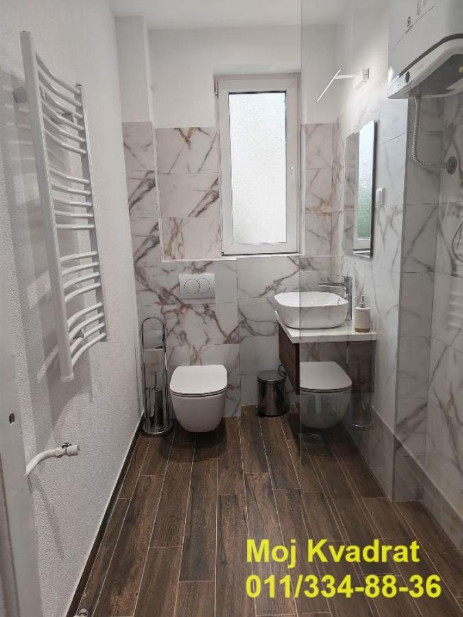 Savski venac, Ekonomski fakultet - Lička 3.0, 70m2 (lođa 2m2), VPR/5, CG, klima, interfon, parking Izdaje se trosoban, kompletno i kvalitetno renoviran stan u visokom prizemlju (visina prvog sprata) u mirnoj ulici, preko puta Ekonomskog fakulteta, u zgradi iz 1950.-ih godina. Stan je izuzetno svetao, dvostrano orijentisan, odličnog rasporeda. U stanu je centralno grejanje, a poseduje i klima uređaj. Prostorije: predsoblje, kuhinja, kupatilo, tri sobe i zastakljena lođa, koja je orijentisana prema dvorišnoj strani zgrade. Kuhinja je kompletno moderno opremljena ugradnim elementima. Preko puta zgrade je velika zelena površina, a na ulici je veliki zonirani parking. Izdaje se na duži vremenski period. Obavezan depozit u visini jedne mesečne zakupnine. Agencijska provizija u skladu sa Opštim uslovima poslovanja. Agent: Jasmina Veljić 063/204-494 (licenca br.959)
