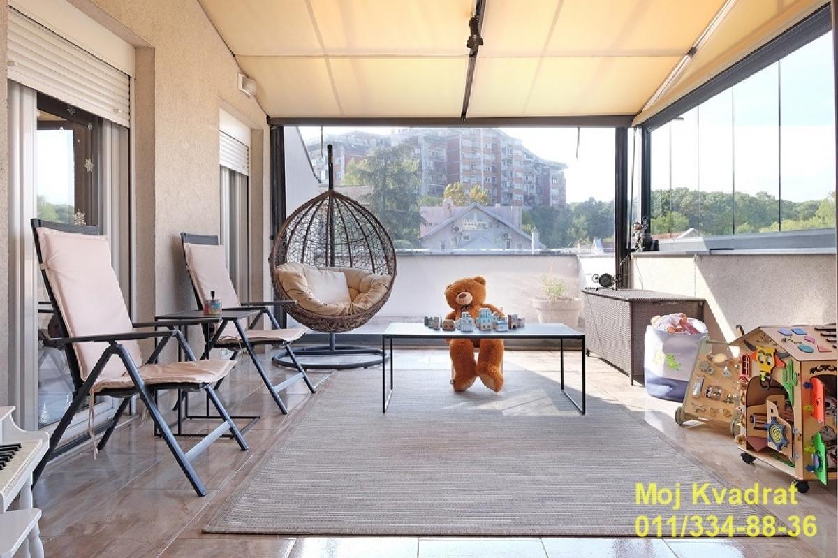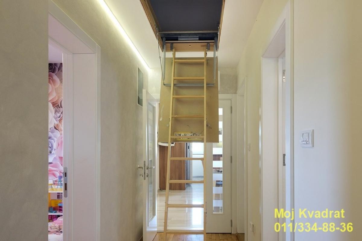 Voždovac, Medaković III - Olge Spiridonović (Mokroluška) 5.0, 144m2 (lođa 25m2), 3/3, norveški radijatori, podno grejanje, dve klime, telefon, interfon U ponudi izuzetan luksuzan petosoban stan sa velikim potencijalom (od 100m2) da može biti dupleks. Stan, koji je investitor gradio za potrebe svoje porodice, nalazi se u mirnom i zelenilom okruženom kraju, odmah posle Plavog mosta (iz pravca grada). Sastoji se od ulaznog hodnika, velike dnevne sobe, iz koje se ulazi u malu radnu sobu. Poseduje prelepu lođu (25m2), kojoj može, po potrebi (leti) da se otvori jedna strana i predstavlja pravu oazu za uživanje. Pored kuhinje, koja je izrađena od najkvalitetnijih materijala i opremljena svim aparatima, se ulazi, s jedne strane, u malu sobu koja služi kao ostava i vešeraj, gde se nalazi i mašina za veš. Sa druge strane, pored prelepog šanka, nalazi se komforna trpezarija. Drugi deo stana čine hodnik, toalet, kupatilo i tri spavaće sobe. U sredini hodnika mogu da se povuku sa tavana stepenice, koje vode na tavan koji služi kao ostava, sa potencijalom za nove kvadrate i sa visinom od 1.7m. U stanu je podno grejanje, dve klime i norveški radijatori i ima male troškove infostana. U stanu ostaje kompletna kuhinja. Odmah useljiv! Za svaku preporuku! Uknjižen na 140m2 korisne površine. Agencijska provizija 2% Agent: Gordana Milošević 069/129-79-72 (licenca br.1763)