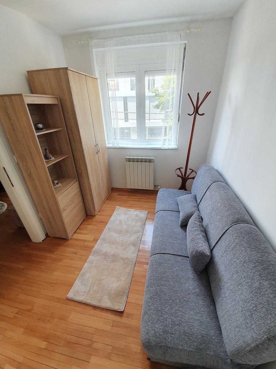 Izdaje se moderno uređen, potpuno namešten, dvoiposoban stan površine 43 m², smešten u samom srcu Vračara. U neposrednoj blizini nalaze se Kalenić pijaca, marketi “Aman” i “Idea” i drugi sadržaji za udoban život, sa i izuzetno dobrom povezanošću sa svim delovima grada. Stan se sastoji od dve spavaće sobe (veće i dečije), kupatila i zasebnog toaleta, prostranog dnevnog boravka sa kuhinjom, koja ima izlaz na terasu sa pogledom na Hram Svetog Save. Stan je smešten na prvom spratu od ukupno četiri, zgrade novije gradnje. Odmah useljiv. Obavezan depozit u iznosu jedne kirije. Posrednička naknada se obračunava u skladu sa Opštim uslovima poslovanja Posrednika "DIVIS NEKRETNINE" d.o.o