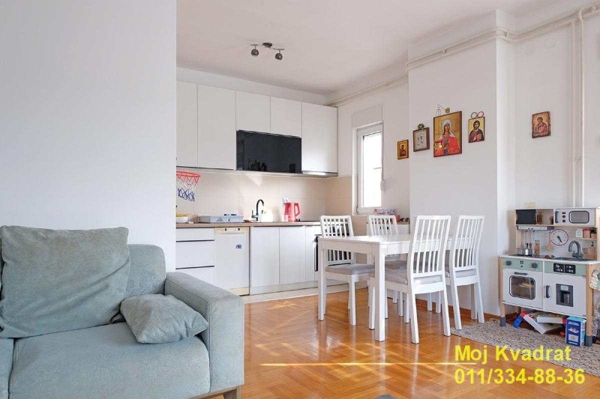 Vračar, Hram Svetog Save - Nebojšina 2.0, 68m2 (terasa 7m2), 4/4, CG sa kalorimetrima U ponudi za prodaju sređen, dvosoban stan na Vračaru, na četvrtom spratu zgrade bez lifta, koji iznenađuje lakoćom. Nalazi se nadomak Hrama Svetog Save i spaja sve što tražite - otvoren pogled, puno sunca, tišina i skladan raspored. Stan koji se doživi, ne samo vidi! Sastoji se od prostranog dnevnog boravka sa trpezarijom i kuhinjom (koncept otvorenog prostora), spavaće sobe, kupatila i terase. Takođe, stan poseduje i poseban skriveni ugradni orman. Prodaje se sa ugradnom kuhinjom i belom tehnikom. Postoji mogućnost dogovora za prodaju sa svim stvarima. Parking je slobodan i uvek se može naći mesto za automobil. Uknjižen na 61m2. Agencijska provizija 2% Agent: Ivana Zeković 060/67-56-640 (licenca br.3830)