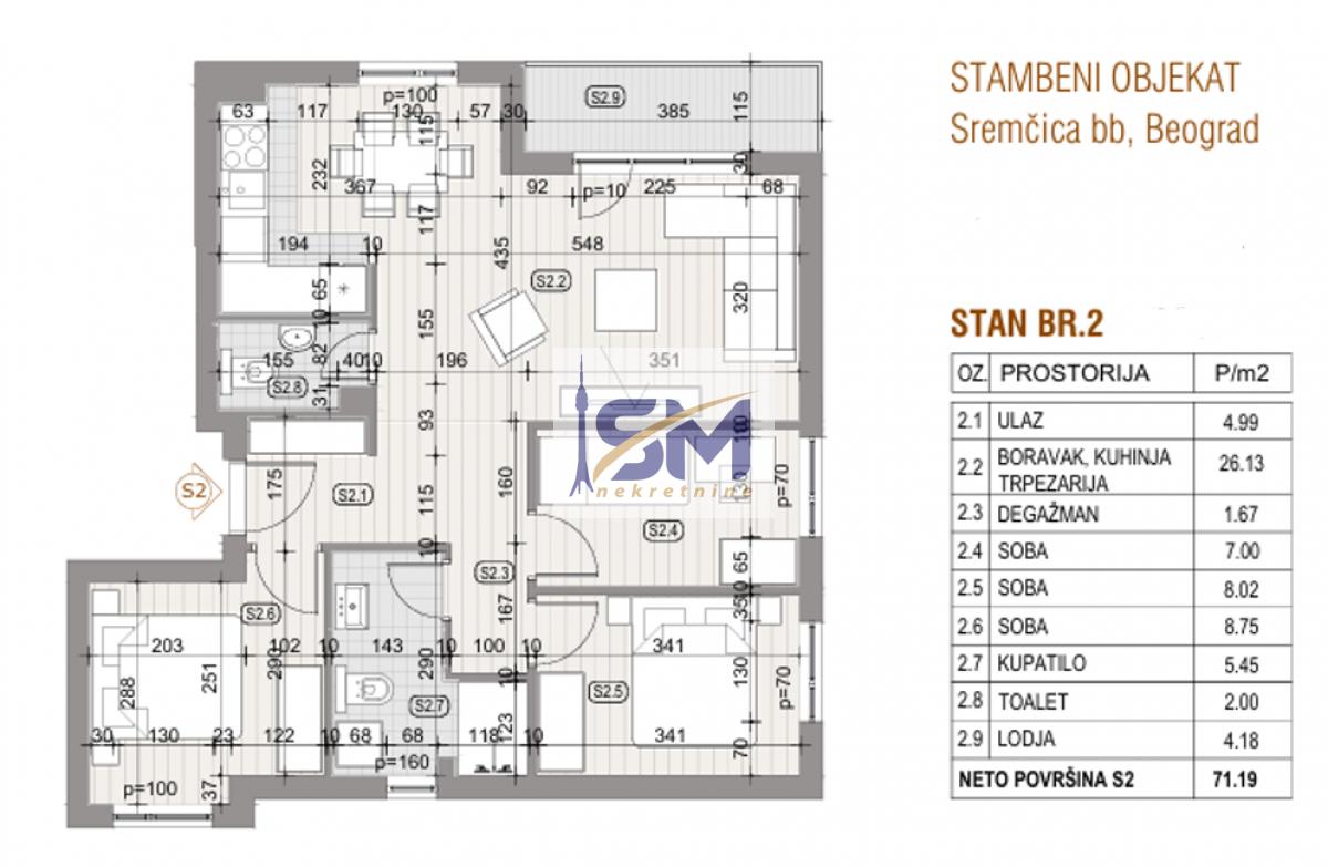 Nov stan 71m2 sa terasom, Moderan dizajn, puno svetla i mirna lokacija. Nov stan bez ulaganja, prvoklasnog kvaliteta gradnje, funkcionalan raspored, komforan dnevni boravak sa trepezarijom, 3 spavaće sobe, kupatilo, gostinski toalet, hodnik, terasa i pripdajuće parking mesto. Novogradnja na odličnoj lokaciji u mirnom delu Sremčice u neposrednoj blizini javnog prevoza. Cena stana+pdv. Za svaku preporuku... U ponudi ima još stanova različite kvadrature i strukture. Posrednička naknada je u skladu sa Opštim uslovima poslovanja Posrednika "SM nekretnine" Beograd Za više informacija 061/610-63-98
