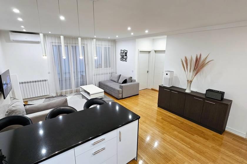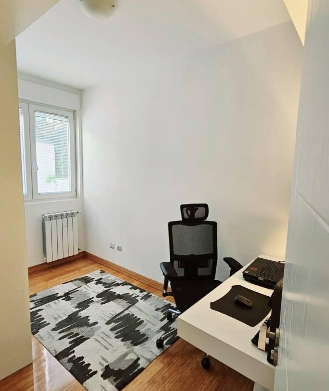 Prodajemo odličan troiposoban stan na visokom prizemlju zgrade iz 2010. godine sa urednim i prostranim ulazom i video nadzorom na Lekinom brdu u Tetovskoj ulici u blizini Druge ekonomske škole. Sastoji se od ulaznog dela, velikog dnevnog boravka, kuhinje sa trpezarijskim delom, tri spavaće sobe od kojih je jedna master sa sopstvenim kupatilom, još jednog kupatila, zastakljene terase i dvorišta. Stan je kompletno renoviran 2018. godine i tom prilikom su zamenjene elektro i vodovodne instalacije. U stanu je ugrađena spoljna PVC stolarija, drvena unutrašnja stolarija, bambusov parket, rasveta, granitna keramika. Etažno grejanje na sopstveni električni kotao. Dvostrano je orijentisan i potpuno izolovan od gradske gužve i buke. Ovaj stan je idealna prilika kako za život, tako i kao investicija za izdavanje. Prodaje se sa svim ugradnim stvarima i kuhinjom. Stanu pripada dvorište kojem se pristupa direktno iz stana površine 60m2. Dobija se na korišćenje i parking mesto u garaži na betonu. Stan je uknjižen na 61m2 dok je grejna površina 71m2, sa zastakljenom terasom 85m2 a ukupna površina sa pripadajućim dvorištem 145m2. U slučaju izdavanja cena stana je 950EUR-a. Posrednička naknada je u skladu sa Opštim uslovima poslovanja Posrednika "DIVIS NEKRETNINE" d.o.o.