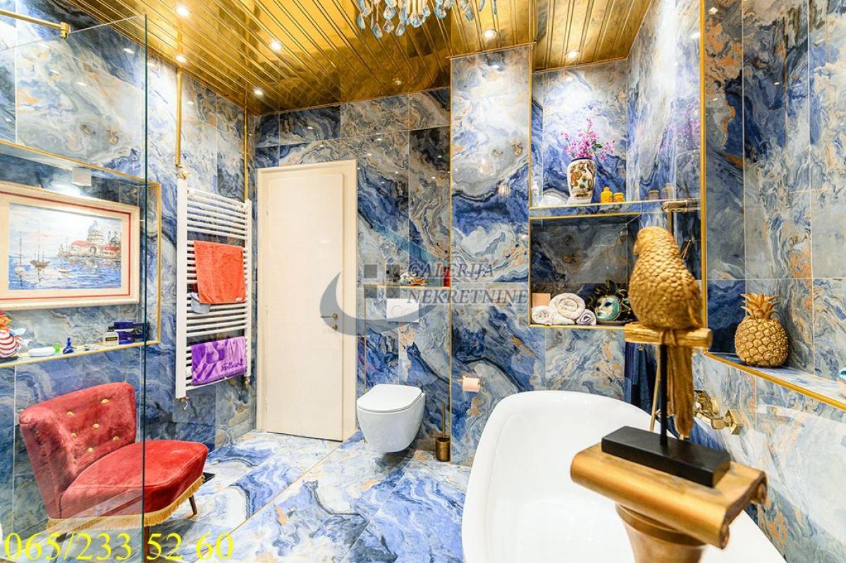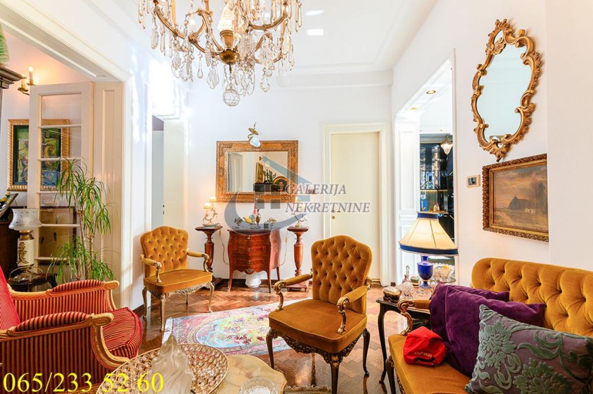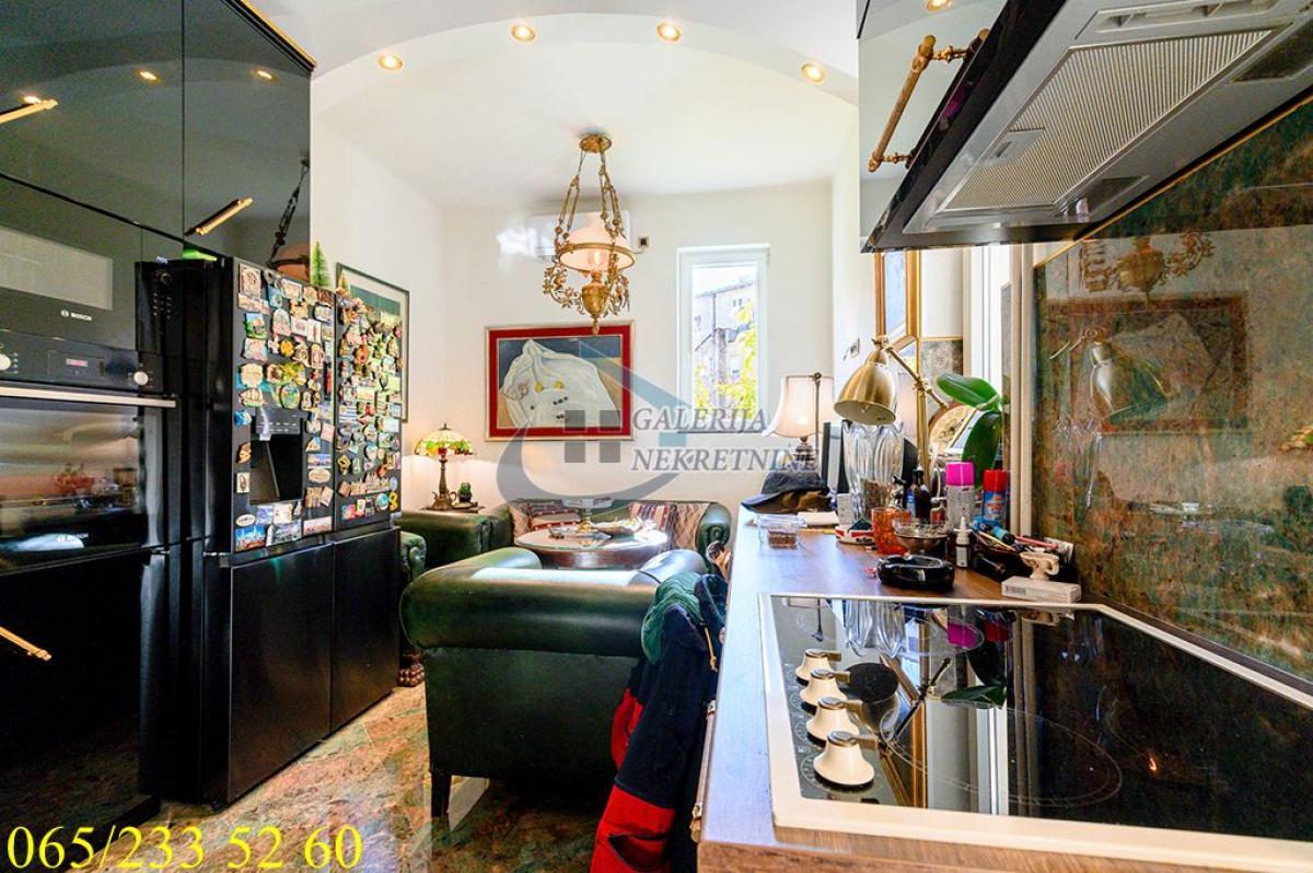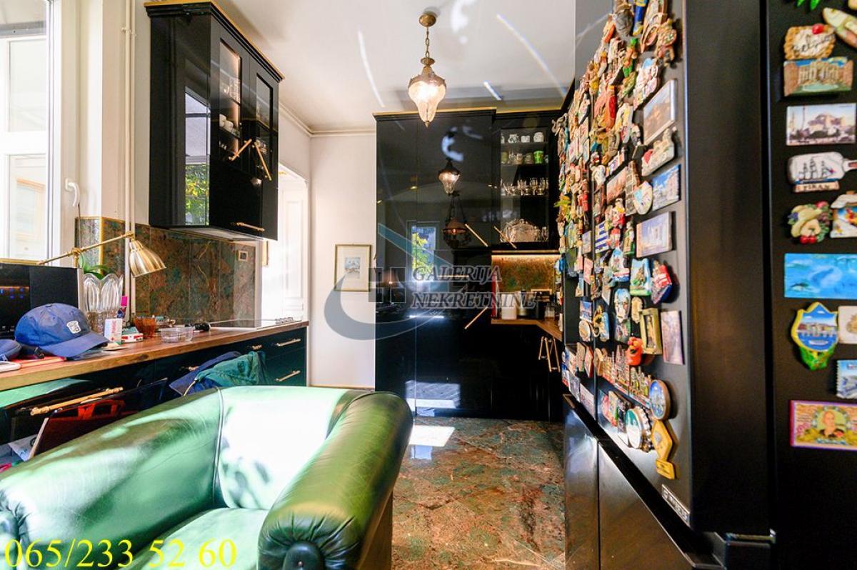 3.0, 108m2(terasa 5m2), 2/3, CG, LUX, interfon, internet, klima, ktv, podrum, video nadzor, salonac Ulica Stanoja Glavaša, locirana na par minuta hoda od Tašmajdanskog parka kao i na par stotina metara od Palilulske pijace, svojom pozicijom pripada najlepšem delu Palilule. Kao centralna gradska lokacija infrastrukturno je kompletno pokrivena i odlično povezana sa svim delovima grada. Sve ovo čini ovaj deo grada izuzetno poželjnim za udoban život. U prilici smo da Vam ponudimo vrlo komforan trosoban stan na drugom spratu trospratnice iz perioda tridesetih godina prošlog veka. Zgrada ima prednje i zadnje dvorište, opasana je zelenilom, sa izuzetno očuvanim i urednim širokim mermernim hodnikom. Sam stan je kompletno renoviran 2003.godine, uz velika ulaganja, pri čemu su korišćeni izuzetno moderni i kvalitetni materijali. Na podovima su mermerne ploče i parket, kupatilo opremljeno italijanskom Trusardi keramikom. Svaka prostorija je prostrana i pravilnog oblika, sa prirodom ventilacijom. Terasa pozicioniranu ka dvorištu, idealnu je za uživanje u bilo kom delu dana. Stan je dvostrano orijentisan, bez buke i sa dosta dnevnog svetla. Prostor izuzetan, atipičan za naše uslove, svaki detalj ugrađen sa ljubavlju, a luksuzu doprinosi i nameštaj i kristalni lusteri, koji mogu po dogovoru biti predmet prodaje, od kojih su neki komadi antikvarski primerci i imaju posebnu vrednost. Grejanje je centralno. Stanu pripada podrum, bezbedan, suv i sa osvetljenjem. Od prostorija: hodnik, kupatilo, dnevni boravak, kuhinja sa trpezarijom, dve spavaće sobe, terasa. Uknjižen na 103m2 korisne povrsine, po navodima vlasnika nekretnine ukupna površina sa terasom iznosi 108m2. Brzo useljiv. Agent prodaje: Zorana Novičić 065/520 32 80