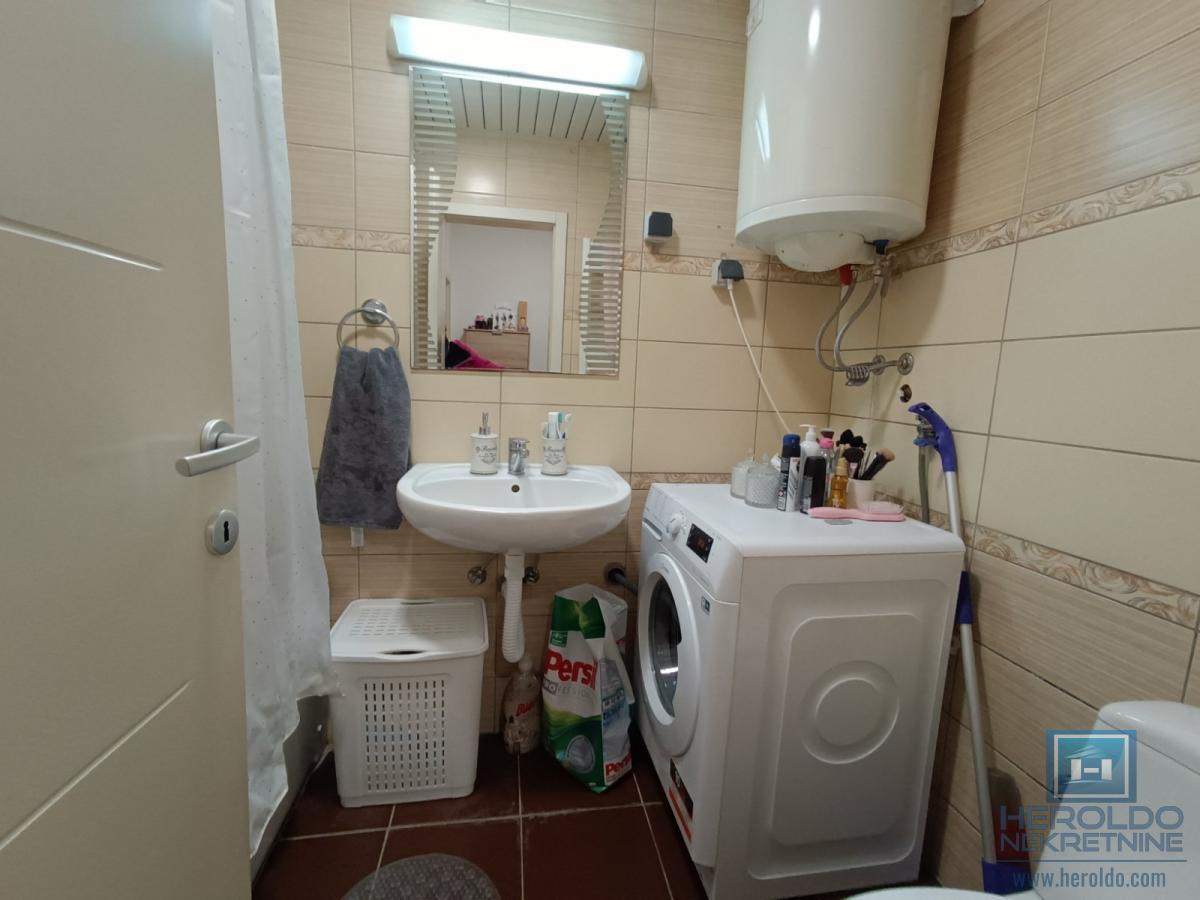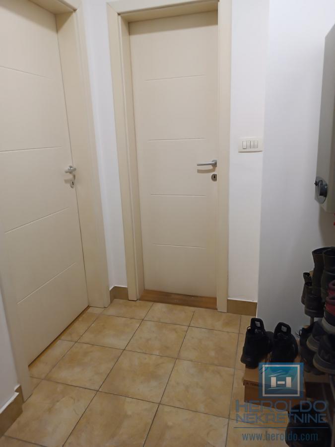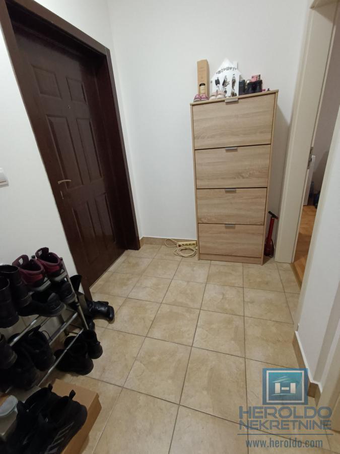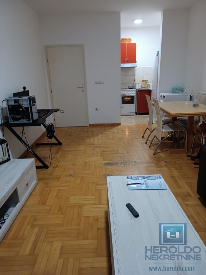 Lep, namesten,, noviji stan,u zgradi Plavuša na 2 spratu. Sastoji se od kuhinje sa dnevnim boravkom, komotnog hodnika, jedne spavaće sobe, kupatila i terase,. U neposrednoj blizini se nalazi vrtić, osnovna i srednja škola, veliki market Univer Export, pijaca, apoteka i manja pošta. Stan se izdaje namesten. Sopstveni kotao za grejanje, po potrosnji. Racionalni troskovi održavanja . Na duzi vremenski period.
