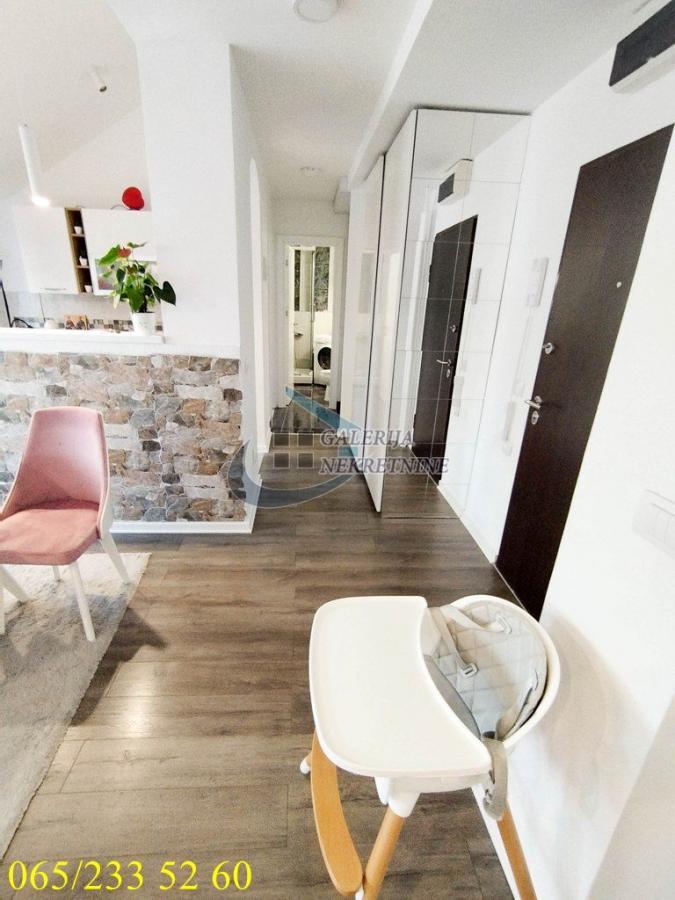 2.0, 57m2(lođa 8m2), 3/4, interfon, internet, klima, ktv, video nadzor, podrum, renoviran Ulica Cerski venac se nalazi u naselju Cerak vinogradi koje pripada opštini Čukarica. U samom naselju postoji obilje parkova i zelenila, u blizini su vrtići, škole, javni prevoz koji dobro povezuje Cerak sa ostalim delovima grada, kao i sva infrastruktura potrebna za udoban porodični život. Ispred zgrade ima dovoljno parking prostora. U prilici smo da vam ponudimo prelep, kompletno renoviran dvosoban stan na trećem spratu održavane četvorospratne zgrade od žute fasadne cigle, koja se nalazi na 200 metara od Vidikovačke pijace (jedne od najboljih u gradu), i kod okretnice autobusa 52. Zgrada bez lifta je izuzetno kvalitetne gradnje, sa urednim ulazom, interfonom i video nadzorom. Stan je jednostrano orijentisan, svetao i bez buke, funkcionalnog rasporeda prostorija i maksimalno iskorišćene kvadrature. U stanu je urađena nova elektroinstalacija, u potpunosti renovirana kuhinja i kupatilo, zamenjene pločice, cevi i ventili za vodu, instalirana led rasveta, postavljena aluminijumska stolarija, nov laminat debljine 12mm preko parketa. Ukras stana je potpuno pokrivena velika lođa idealna za uživanje. Grejanje je centralno a stan ima i pripadajući podrum. Ova nepokretnost kao i lokacija na kojoj se nalazi, pružaju prave mogućnosti kako za lep porodičan život, tako i za izdavanje. Od prostorija: kuhinja, dnevni boravak sa trpezarijskim delom, hodnik, spavaća soba, kupatilo, lođa. Uknjižen na 49m2 korisne površine, po rečima vlasnika nekretnine ukupna površina sa lođom iznosi 57m2, brzo useljiv. Agent prodaje: Slavka Vasić 060/131 89 08