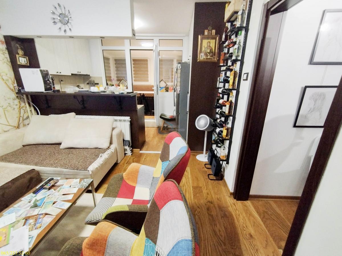2.0, 41m2 uknjiženo (mereno 48m2), 1/7, CG, dva lifta, klima, interfon, internet, ktv, podrum Naselje Vidikovac pripada opštini Rakovica, i potpuno je nezaavisno u smislu svih sadržaja za udoban život. Ulica Vidikovački venac ide u krug oko celog naselja obuhvata deo od pijace pa kruži oko crkve, maksija, MUP-a Rakovica, pa sve do Susedgradske ulice. Naselje je izuzetno dobro povezano sa svim delovima grada sa više linija gradskog prevoza. Odlikuje ga poznata Vidikovačka pijaca, bezbroj prodavnica, kafića, Lidl je na nekoliko metara, blizina sportskog centra Košutnjak i razni drugi sadržaji. U prilici smo da Vam ponudimo izuzetan dvosoban stan na prvom spratu održavane sedmospratnice sa dva lifta, kvalitetno zidane 1982 gidine. Održavana i uredna zgrada od crvene fasadne cigle, okružena zelenilom, nalazi se u najlepšem delu Vidikovca u blizini Maksija i MUP-a . Stan je svetao, jednostrano jugoistočno orijentisan sa pogledom na park, odličnog je rasporeda prostorija i maksimalno iskorišćene kvadrature. Renoviran je kompletno i kvalitetno, od ulaznih bezbednisnih vrata renomiranog proizvođača, hrastovog brodskog poda, zamenjene su strujne i vodovodne instalacije, alu stolarija u spavaćoj sa roletnom na elektro pogon i komarnikom, u trpezariji su pvc prozori sa komarnicima, itd ... U perfektnom je stanju te dodatna ulaganja nisu potrebna. Prodaje se sa kompletnim nameštajem i tehnikom. Stan takođe ima pripadajući podrum. Zbog dobre lokacije kao i kompletno razvijene infrastrukture, ovo je prava prilika za klijente koji traže kvalitetan stan na sve traženijoj lokciji što za život što kao investiciju za izdavanje. Od prostorija: ulazni hodnik, dnevni boravak sa kuhinjskim delom, trpezarija, spavaća soba, kupatilo. Uknjižen na 41m2 građevinske površine odnosno 37m2 korisne površine. Po navodima vlasnika nekretnine proširenjem stana uz saglasnost stanara ukupna merena površina iznosi 48m2. Brzo useljiv. Agent prodaje: Slavka Vasić 060/131 89 08
