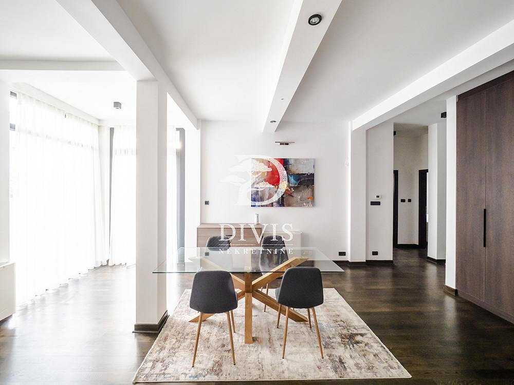 Izdaje se potpuno nov, moderan i luksuzno namešten stan u ekskluzivnoj zoni Senjaka, smešten u manjoj, prestižnoj zgradi sa samo tri stana, što garantuje maksimalnu privatnost i mir. Stan se nalazi na prvom spratu i pruža prijatan osećaj komfora, tišine i ekskluzivnosti. Struktura stana je izuzetno funkcionalna. Ulazno predsoblje vodi u prostranu dnevnu sobu sa izlazom na lepu terasu, trpezariju i potpuno odvojenu kuhinju. Spavaći deo je fizički razdvojen i obuhvata veliku glavnu spavaću sobu, manju sobu i prostrano kupatilo sa prirodnom ventilacijom. Iz predsoblja se ulazi i u gostinski toalet. Stan je opremljen visokokvalitetnim nameštajem i kompletnim setom savremene tehnike. Grejanje i hlađenje funkcionišu putem modernog sistema toplotnih pumpi, što obezbeđuje energetsku efikasnost i niske troškove. Zgrada poseduje veliki privatni bazen, namenjen isključivo za tri stana, što dodatno naglašava luksuz i ekskluzivnost ove nekretnine. Stan takođe poseduje svoje obezbeđeno parking mesto sa rampom. Depozit je obavezan u visini jedne mesečne zakupnine. Za više sličnih nekretnina pogledajte našu ponudu stanova za izdavanje na Senjaku, kao i ponudu stanova za izdavanje na Dedinju. Posrednička naknada se obračunava prema Opštim uslovima poslovanja agencije DIVIS NEKRETNINE DOO.