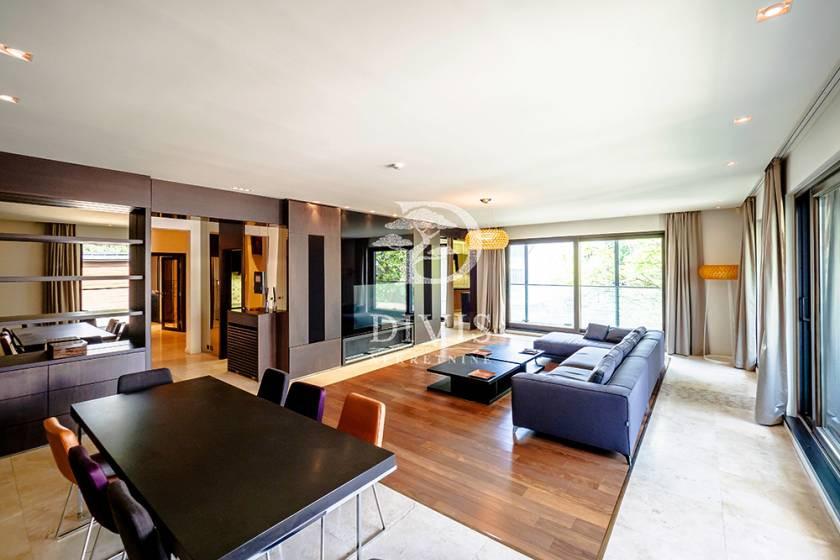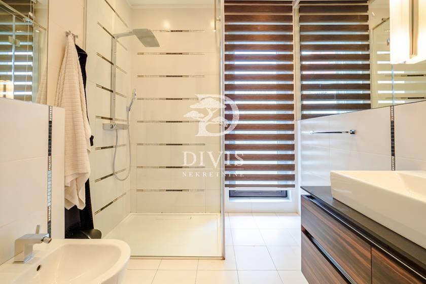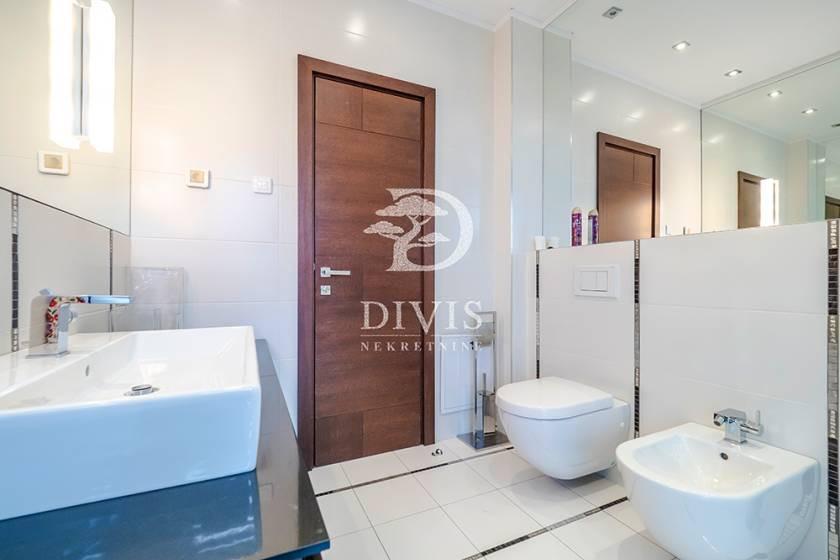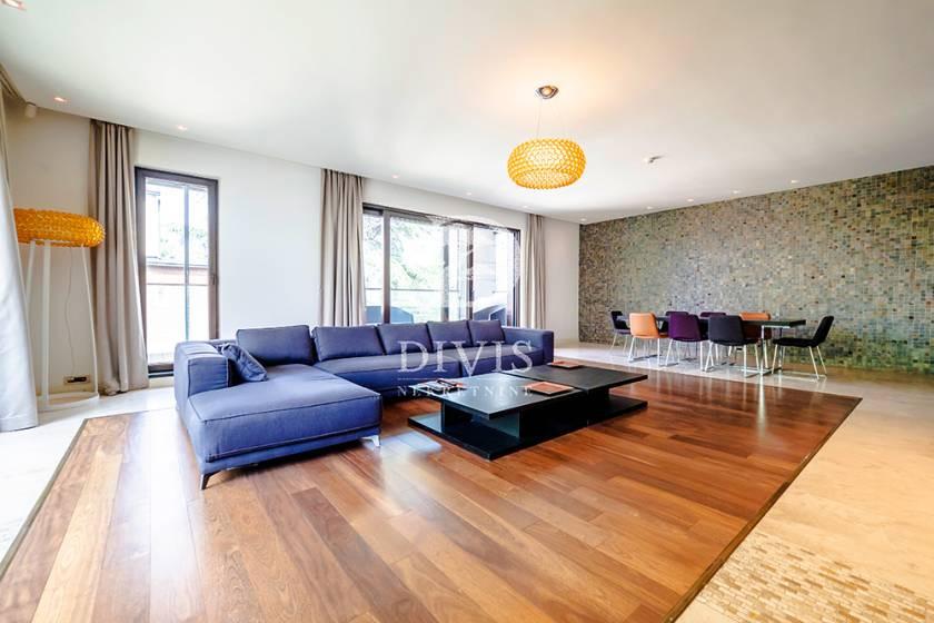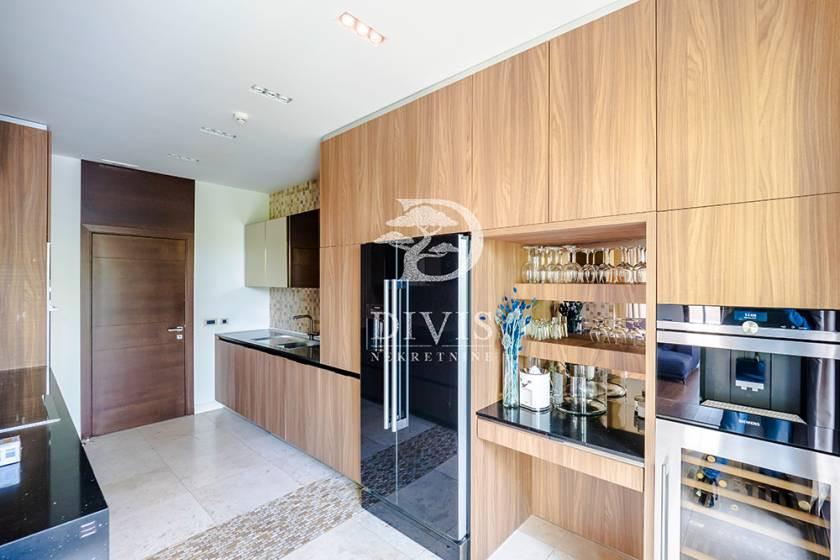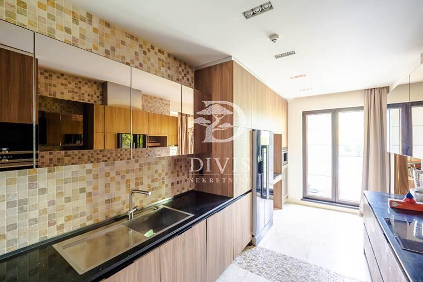 Izdajemo odličan četvorosoban stan od 234m2 sa tri parking mesta na Dedinju, u ulici Serdar Jola. Stan se nalazi na prvom spratu (na terenu u novijoj zgradi, izgrađenoj od najsavremenijih materijala i sa ugrađenom luksuznom opremom (panoramski lift, prostrana garaža sa led osvetljenjem, 24h video i fizičko-tehničko obezbeđenje…). Stan je podeljen u dve zone (dnevna i spavaća). Dnevna se sastoji od velikog dnevnog boravka sa izlazom na veliku terasu, prostrane kuhinje, dela za trpezariju, velikog garderobera i gostinskog toaleta. Spavaća zona se sastoji od hodnika, tri prostrane spavaće sobe (svaka soba ima svoje kupatilo), ugradnih plakara. Iz svake spavaće sobe se izlazi na terasu.Na podu terasa je decking pod dok je terasa natkrivena žaluzinama. Visina plafona od 2.85m. Stan se izdaje kompletno namešten. Depozit u visini jedne mesečne kirije. Za više sličnih nekretnina pogledajte našu ponudu stanova za izdavanje na Dedinju, kao i našu ponudu stanova za izdavanje na Senjaku. Posrednička naknada je u skladu sa Opštim uslovima poslovanja Posrednika DIVIS NEKRETNINE DOO.