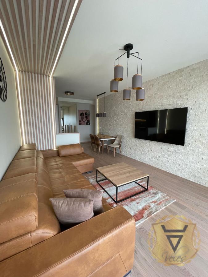 Izdaje se stan od 83m2, kuhinjsko-trpezarijski deo sa dnevnom sobom, dve spavaće sobe, kupatilo sa kadom i kupatilo sa tušem, parno kupatilo sa zvezdanim nebom. Predivan pogled na hram Svetog Save i grad, što je odličan razlog za meditaciju na terasi. Ako ste pedantni, cenite komfor i kvalitet okruženja, ovo je stan za Vas. Za dekoraciju, korišćeni su prirodni kamen i drvo. U dnevnoj sobi se nalazi televizor Samsung ( dijagonala 75 ) i velika ugaona garnitura od prirodne holandske kože premijum klase, koja se razvlači, u slučaju da Vam dodji gosti. Kuhinjski sto je moguće razvući, što može poslužiti kao odličan povod da vreme provedete sa svojim bliskima. U spavaćoj sobi nalazi se krevet ( 180x160cm ) sa ortopedskim madracem, od koga vas neće boleti ledja. Ovo je retkost u Srbiji. Celokupna tehnika je Bosch ( 8 i 6 serija ), mašina za pranje veša sa mašinom za sušenje. U kuhinji se nalazi kuhinjski orman i česma sa meljačem Blanco. Rasvetu je moguće regulisati po jačini, kako Vam najviše odgovara. Takodje, možete se opustiti posle napornog dana u svom parnom kupatilu sa zvezdanim nebom. U stanu su ugradjeni protočni filteri i filteri za pijaću vodu. Ovo je najbolja varijanta pročišćavanja vode. Sva sanitarija je Kludi. U stanu postoji puno prostora za odlaganje stvari, potrebno je samo da se uselite. Postoji posudje, bela tehnika, posteljina, peškiri, čak i kapsule za aparat za kafu. U zgradi se nalazi restoran Kaldi, dečja igraonica, salon lepote, cvećara, prehrambena prodavnica, sportski centar i kafić. Zgrada se nalazi u neposrednoj blizini kule Svetog Regisa i tržnog centra Galerija, što dodatno ističe premijum kvalitet stana. Na recepciji Vam uvek mogu pomoći oko bilo čega. Vlasnik stana takodje živi u istoj zgradi i stoji Vam uvek na raspoloaganju. Postoji mogućnost organizacije čišćenja. Kao bonus uz stan ide i parking mesto pored lifta i prostorija za čuvanje stvari. Vlasnik govori ruski, srpski i engleski jezik. Grejanje je centralno, klima se nalazi u svim prostorijama. Obavezna su dva depozita. Agencija za nekretnine Veles broj u registru posrednika 1149 Agencijska provizija 50%* Način plaćanja: kirija+depozit+ag.provizija