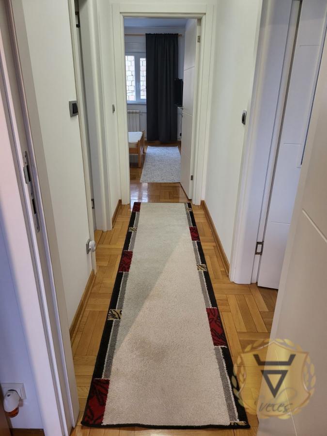 Stan se nalazi u mirnoj ulici blizu Ade Ciganlije, na minut hoda od tržnog centra Ada Mall. Odlična je povezanost sa centrom grada, Novim Beogradom i ostalim delovima grada. Stan je u potpunosti adaptiran. Nalazi se na drugom spratu. Sunčan je i svetao i dvostrano orijentisan. Sastoji se od dnevne sobe, kuhinje, dve spavaće sobe, kupatila, toaleta i dve terase. Spavaći blok sa kupatilom je odvojen. Kompletno je namešten i opremljen. Grejanje je centralno. Bez kućnih ljubimaca. Plaćanje je mesečno, za mesec unapred i depozit. Izdaje se na duži period. Agencija za nekretnine Veles broj u registru posrednika 1149 Agencijska provizija 50%* Način plaćanja: kirija+depozit+ag.provizija