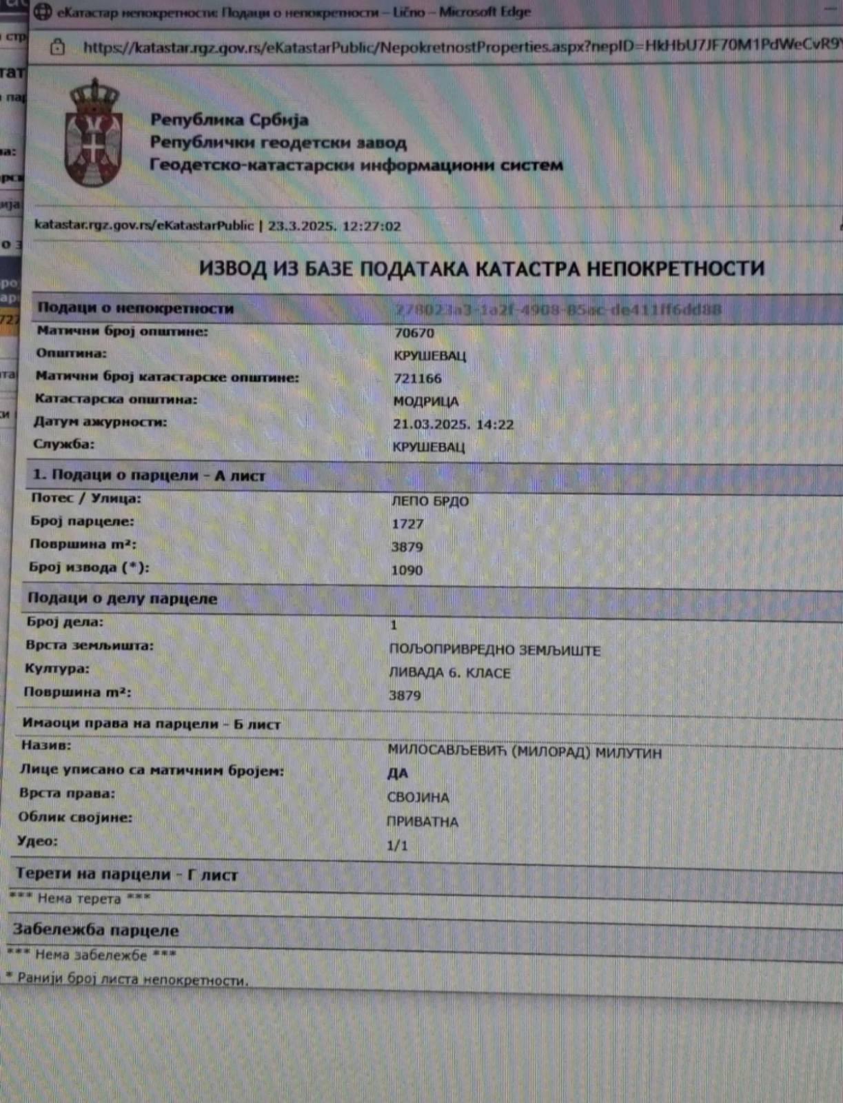 Prodajem plac na lepom mestu u vikend naselju "Trmčare" veličine 38,79 ari cena 650evra /ar plac je udaljen 7 Km od Kruševca. Plac se nalazi na lepom i mirnom mestu , 300m je udaljen od asvaltnog puta i ima panoranski pogled ka Kruševcu . U blizini se nalaze livade kao i šuma , pogodno za šetnje. Mogućnost izgradnje kuće , vikendice ili objekta za neku delatnost. Do placa postoje već izgradjene kuće . Od infrastrukture ima: gradska voda , struju i prirodni gas. Postoji mogućnost kupovine polovine placa. Vlasnik placa 1/1 Milutin Milosavljević . Telefon : 064 828 60 29 Milutin