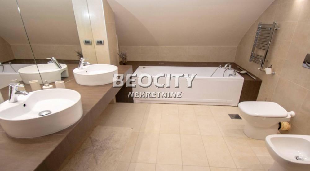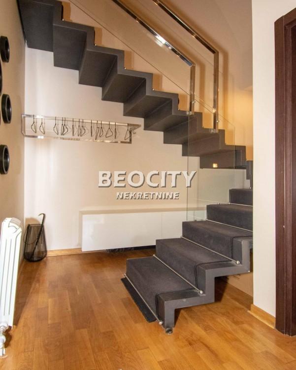 Agencijski ID: 126415, 4/4, dupleks, klima, lift, terasa, uknjižen, parking, podrum, pogodan za pp, stambena zgrada. Predstavljamo vam stan dupleks tipa na vrlo atraktivnoj lokaciji, u mirnom delu Vračara. Nalazi se u zgradi novije gradnje, održavana je, ima lift. Izuzetno funkcionalan prostor, pogodan kako za stanovanje tako i za kancelarijski prostor, opremljen kvalitetnim nameštajem i tehnikom, modernog enterijera i vrhunskog kvaliteta ugradnih materijala. Postoji mogućnost kupovine sa nameštajem. Na prvom nivou se nalaze ulazni hol, dnevni boravak sa kaminom na drva, trpezarija sa prostornom terasom, „open space“ kuhinja, kuhinjska ostava i gostinjski toalet. Na gornjem nivou su četiri komotne višenamenske sobe, perionica veša i dva kupatila, jedno kupatilo je sa tuš kabinom, a drugo sa kadom. Stan je dvostrano orijentisan, pogled je na ulicu sa bogatim drvoredom i na padinu Vračara. Centralno grejanje je po potrošnji, centralni sistem klimatizacije marke Toshiba, video interfon. Poseduje dva parking mesta u garaži sa auto liftom kao i dodatno parking mesta na ulazu u zgradu koja mogu da se prodaju po posebnoj ceni. Agencijska provizija 2%. Telefoni: 060/328-3901 • 060/555-9720 • 011/328-3901.